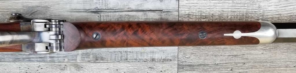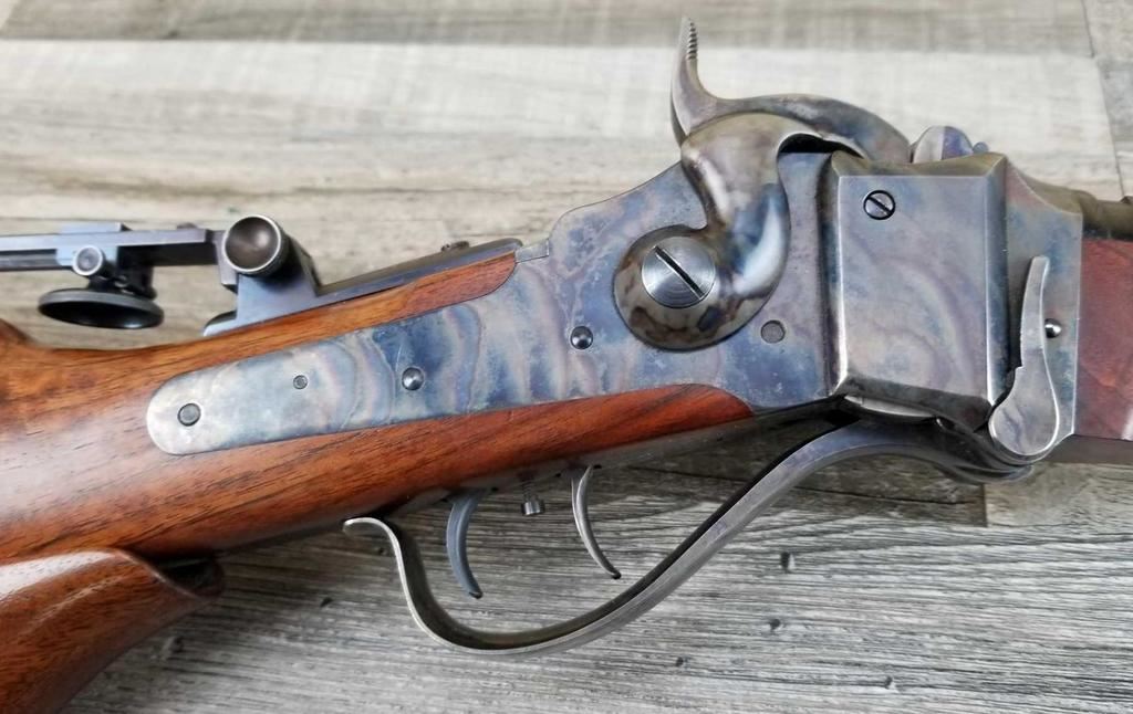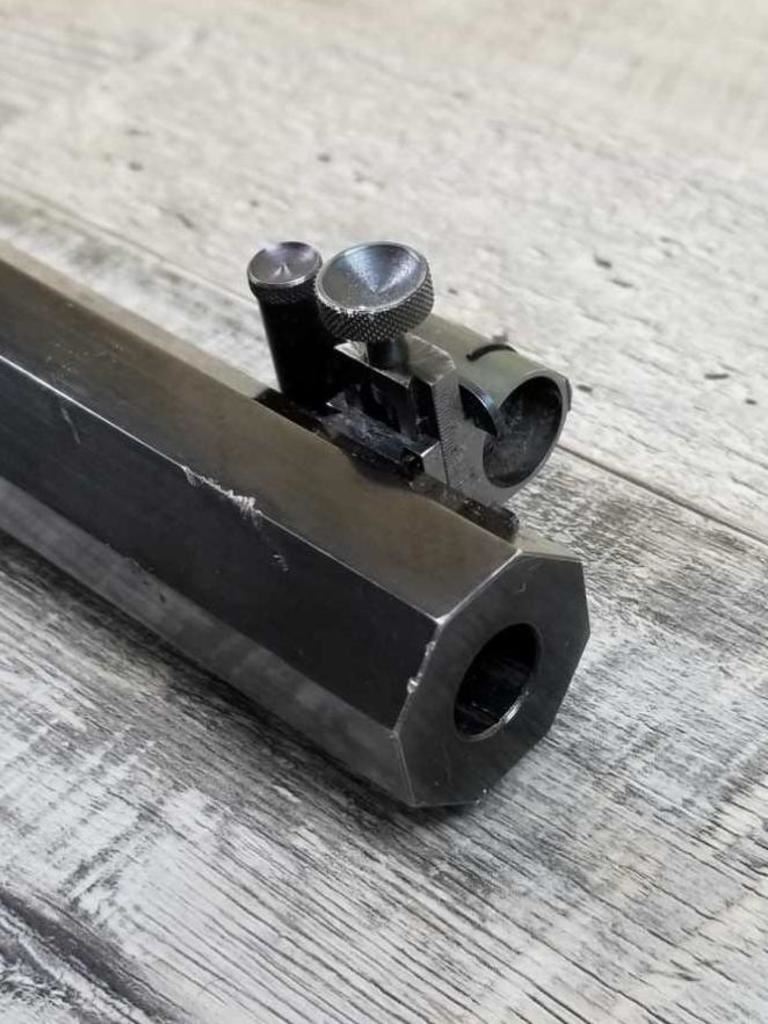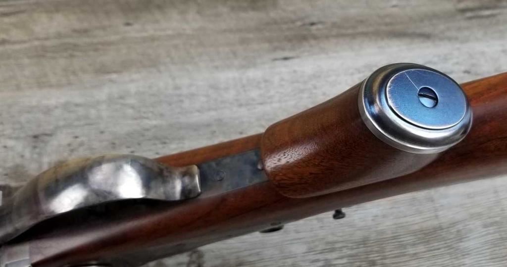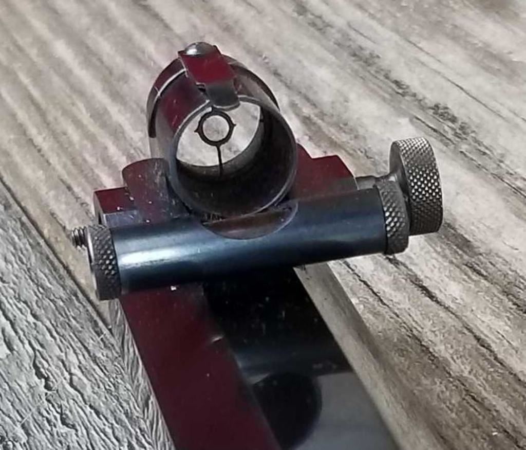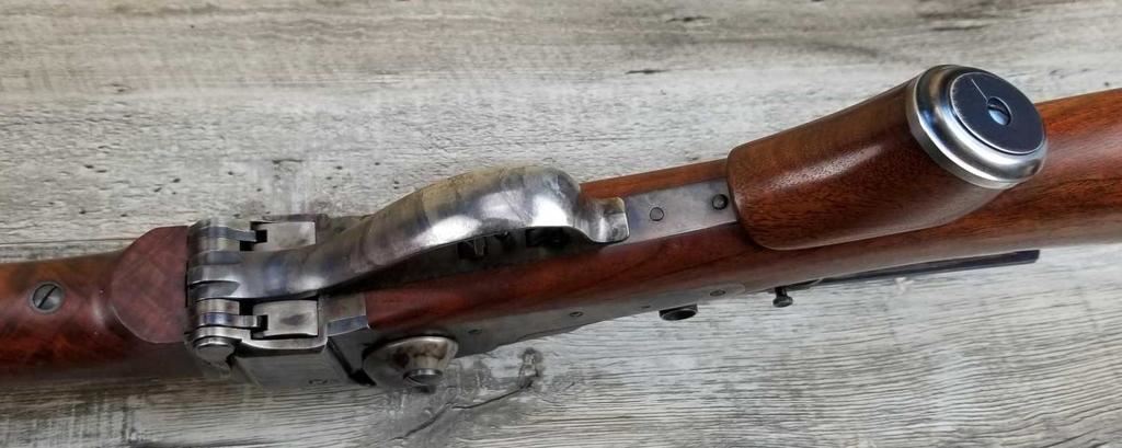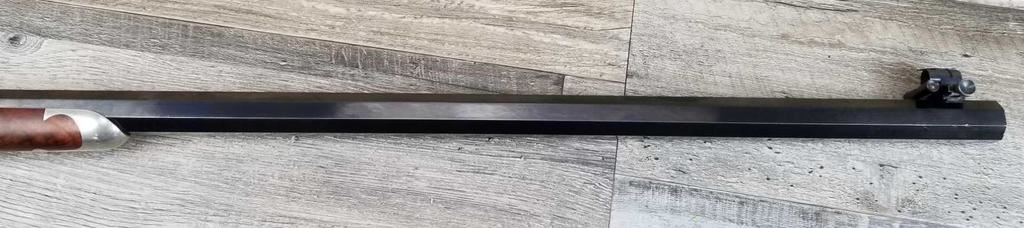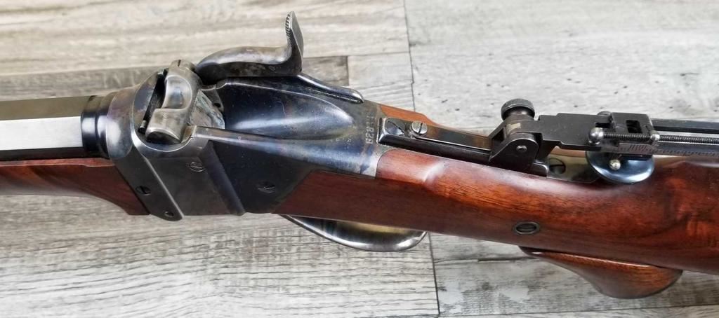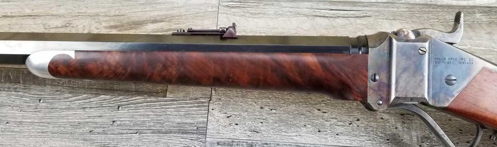 RIFLE FEATURES SPRIIT LEVEL GLOBE FRONT SIGHT, LONG RANGE VERNIER TANG SIGHT, DOUBLE SET TRIGGER AND REMOVABLE PISTOL GRIP. SHOWS ONLY THE LIGHTEST MARKS FROM HANDLING.