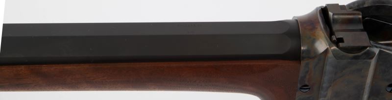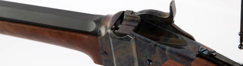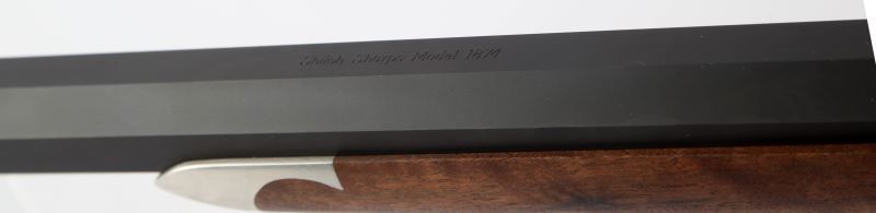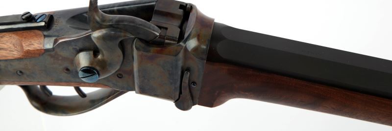 Modern manufactured Sharps Model 1874 Sporter target rifle, manufactured by Shiloh-Sharps Rifle Manufacturing of Big Timber, Montana. Rifle boasts a 30 inch heavy octagonal barrel, Montana Vintage Arms long range buffalo soule rear tang sight, MVA spirit level front sight, and left handed cheek rest. Finish is matte blue on barrel, with case colored receiver, and stock is walnut with pewter tipped fore end. Bright clean bore, with 99% finish on surfaces and excellent stock. Overall excellent condition. Caliber: .45-70 Gov't Serial #: B5260