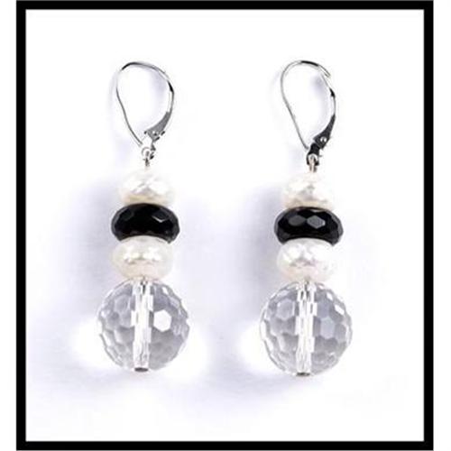 These fine dangling earrings are perfect for summer wear with the contrasting colors! 4 fresh water pearls are accompanied by 2 onyxes and 2 crystal beads. The earrings measure 31 millimeters (1-1/4 inches) x 14 millimeters (9/16 inches).