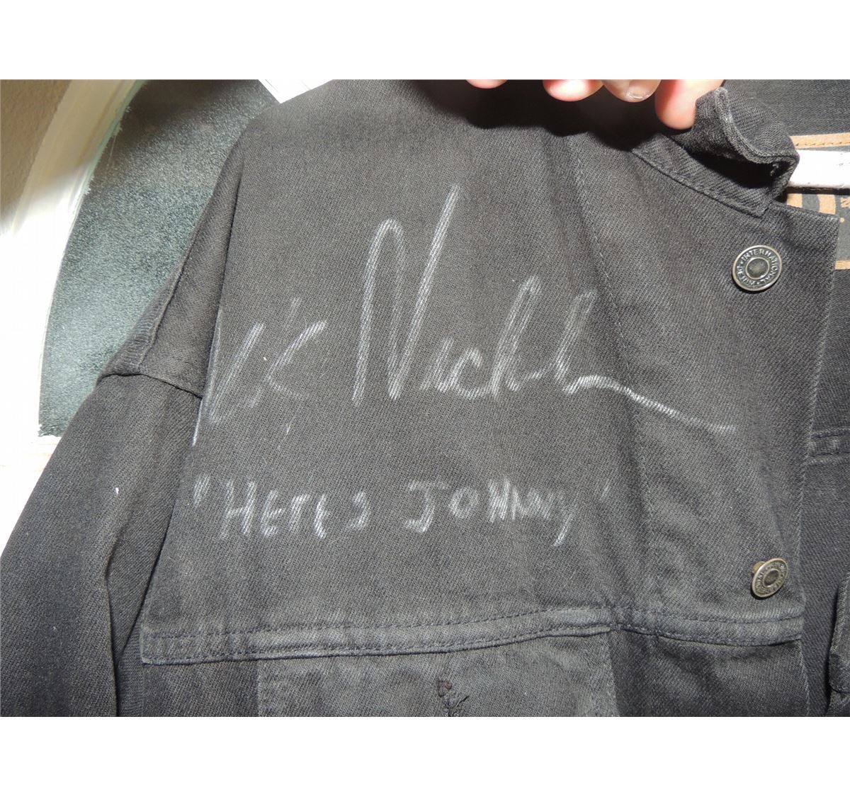 Very cool Denim jacket with incredible graphic signed by jack Nicholson with "HERE'S JOHNNY"!