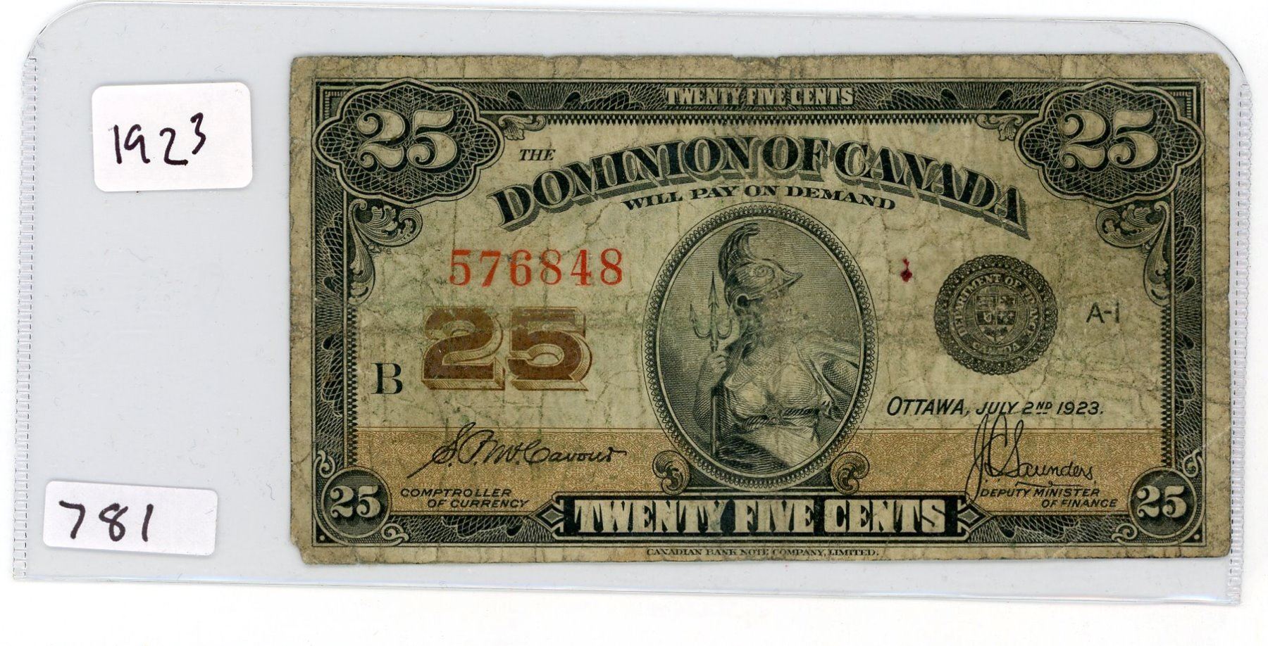 SHINPLASTER (25 CENT BILL) *CANADA* (1923)