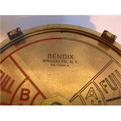 SHIP ENGINE ROOM TELEGRAPH. Labeled "Bendix-Brooklyn, NY-CA-13339-A". Brass face. 12.5" Dia.