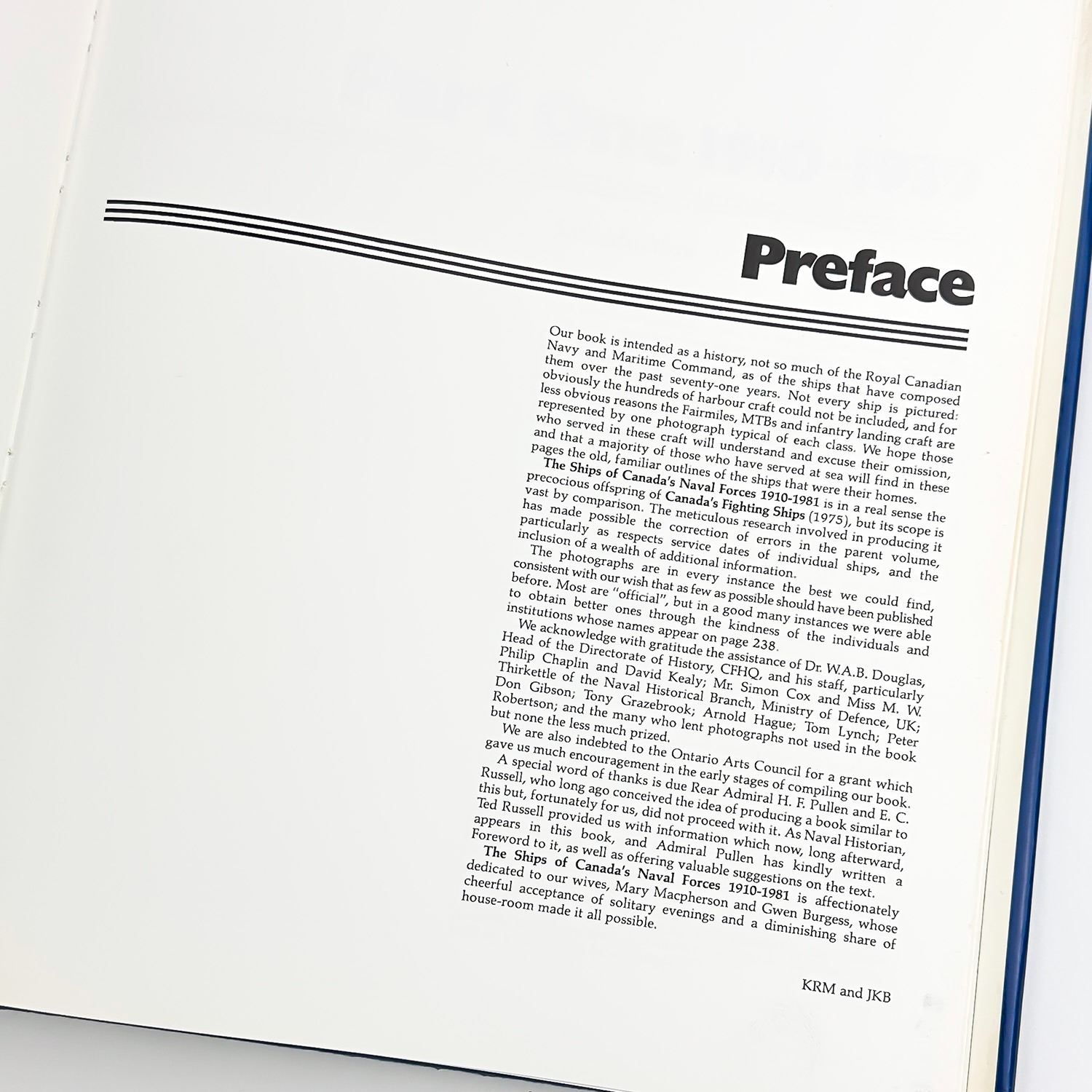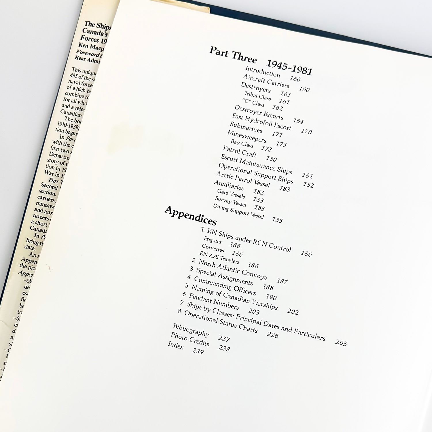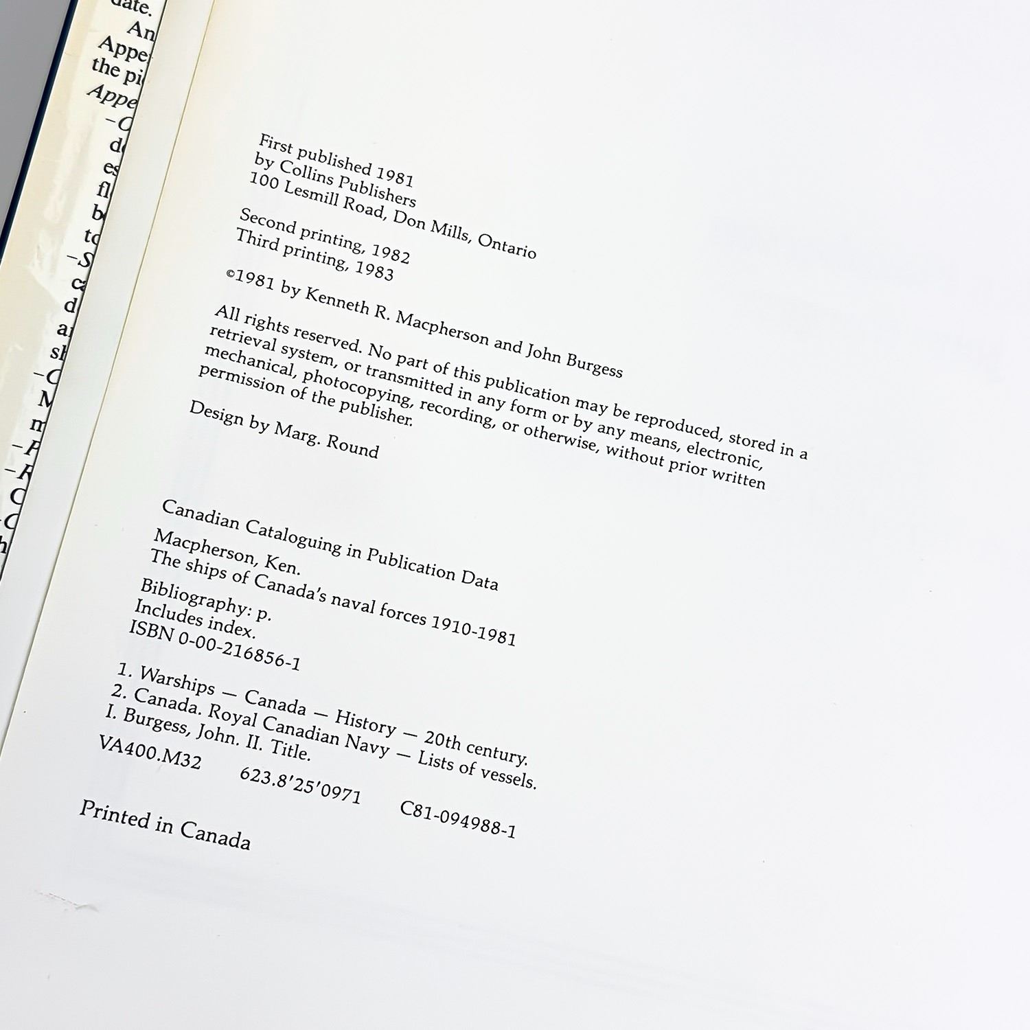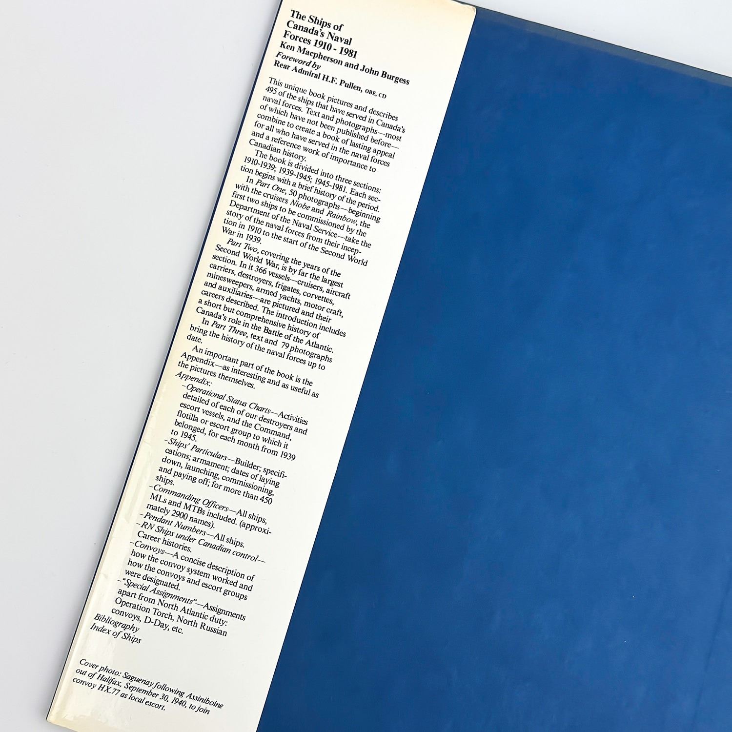 #8714 - THE SHIPS OF CANADA’S NAVAL FORCES 1910-1981 - A COMPLETE PICTORIAL HISTORY OF CANADIAN WARSHIPS. THIS UNIQUE BOOK PICTURES AND DESCRIBES 495 SHIPS THAT HAVE SERVED IN CANADA’S NAVAL FORCES. VINTAGE WARSHIP SHIP REFERENCE HISTORY BOOK. HARDCOVER WITH DUST JACKET BY KEN MACPHERSON & JOGN BURGESS - ©1983 - 240 PAGES