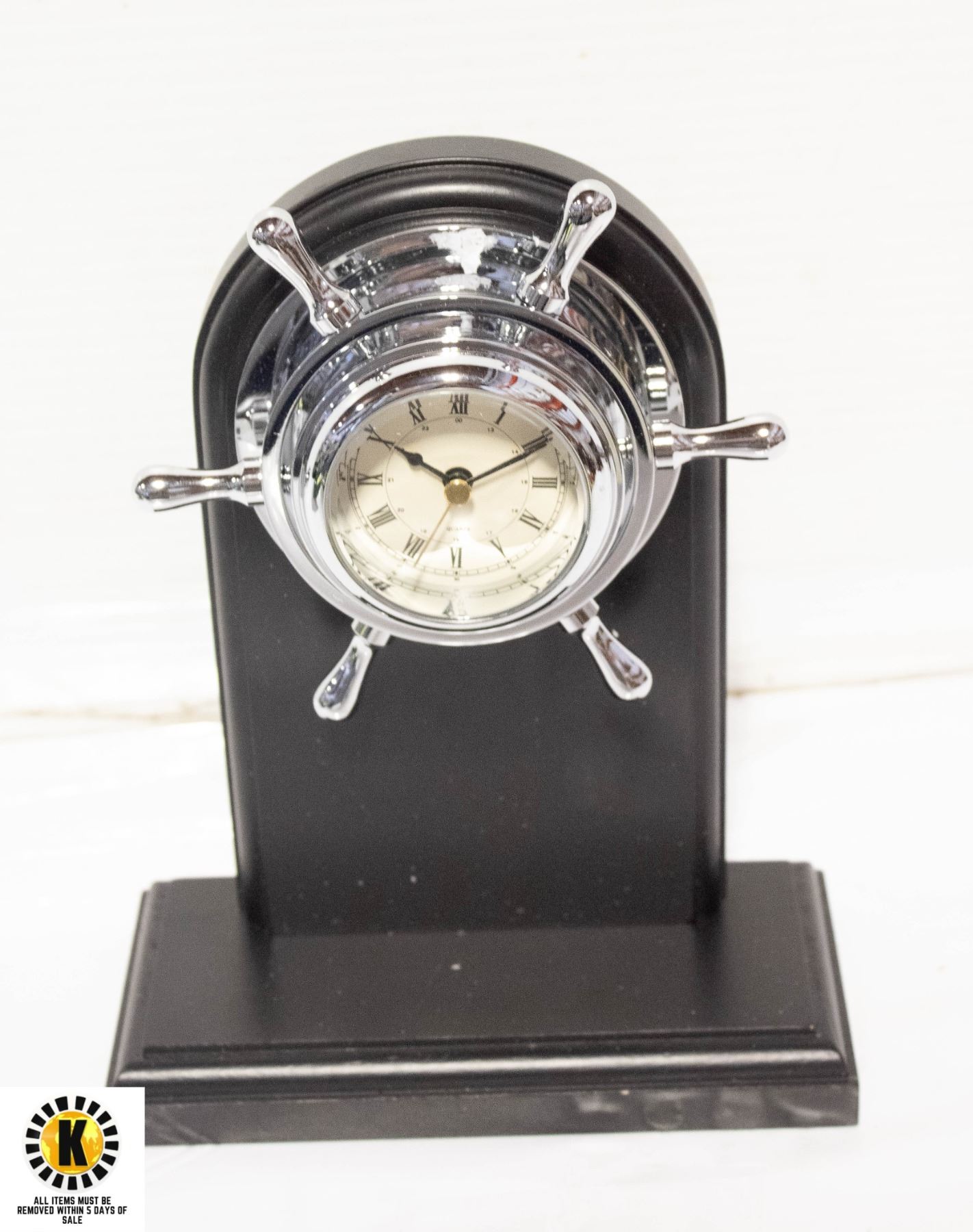 SHIPS WHEEL CLOCK W ENGRAVABLE PLAQUE