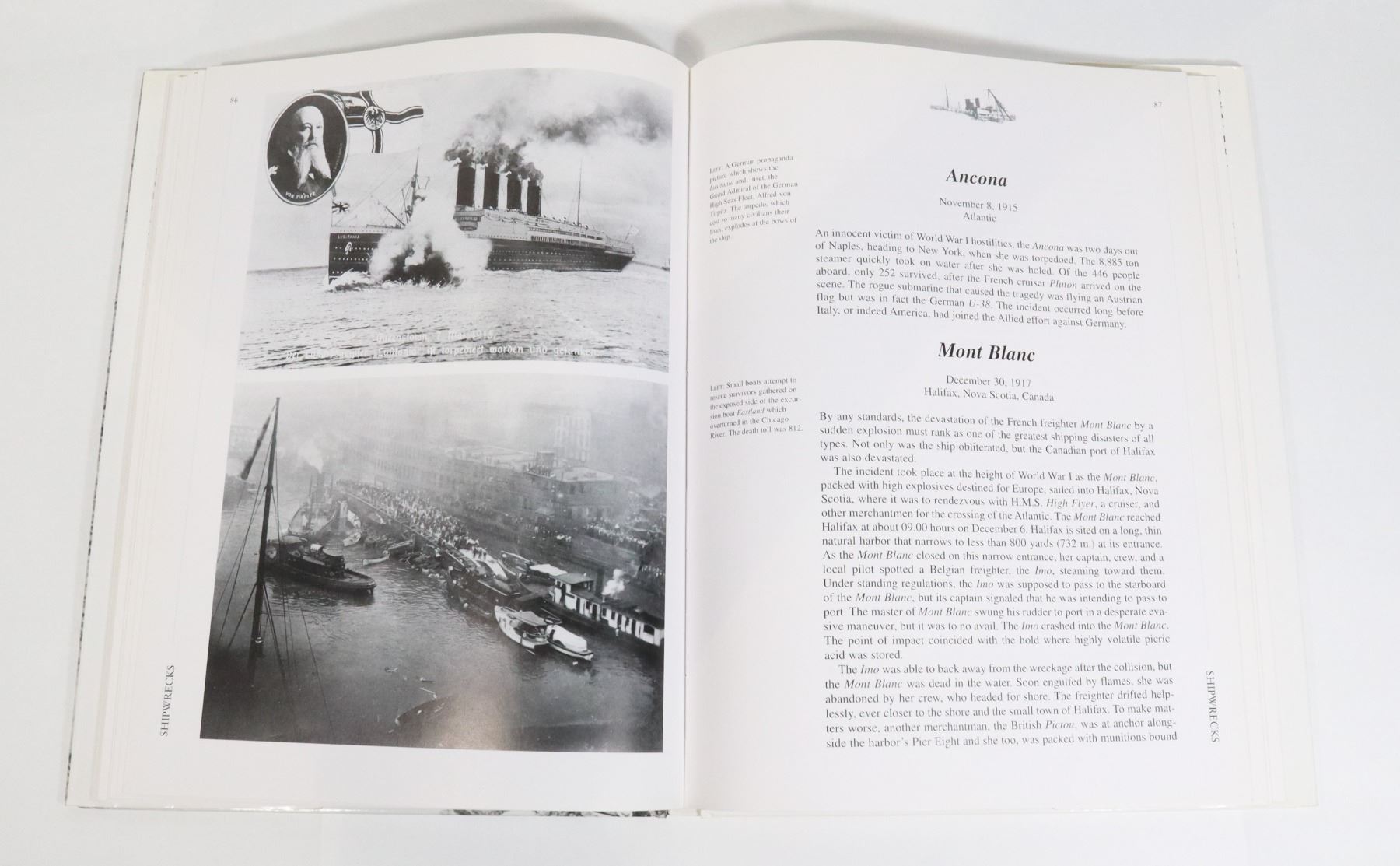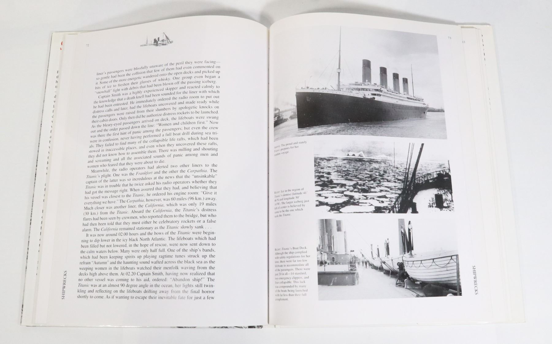 HARDCOVER BOOK. THE STORIES OF FAMOUS SHIPWRECKS AROUND THE WORLD AND THROUGHOUT HISTORY, INCLUDING TITANIC, SULTANA, LUSITANIA, MARY ROSE, EXXON VALDEZ, AND MANY MORE. FULLY ILLUSTRATED WITH PHOTOGRAPHS AND PAINTINGS