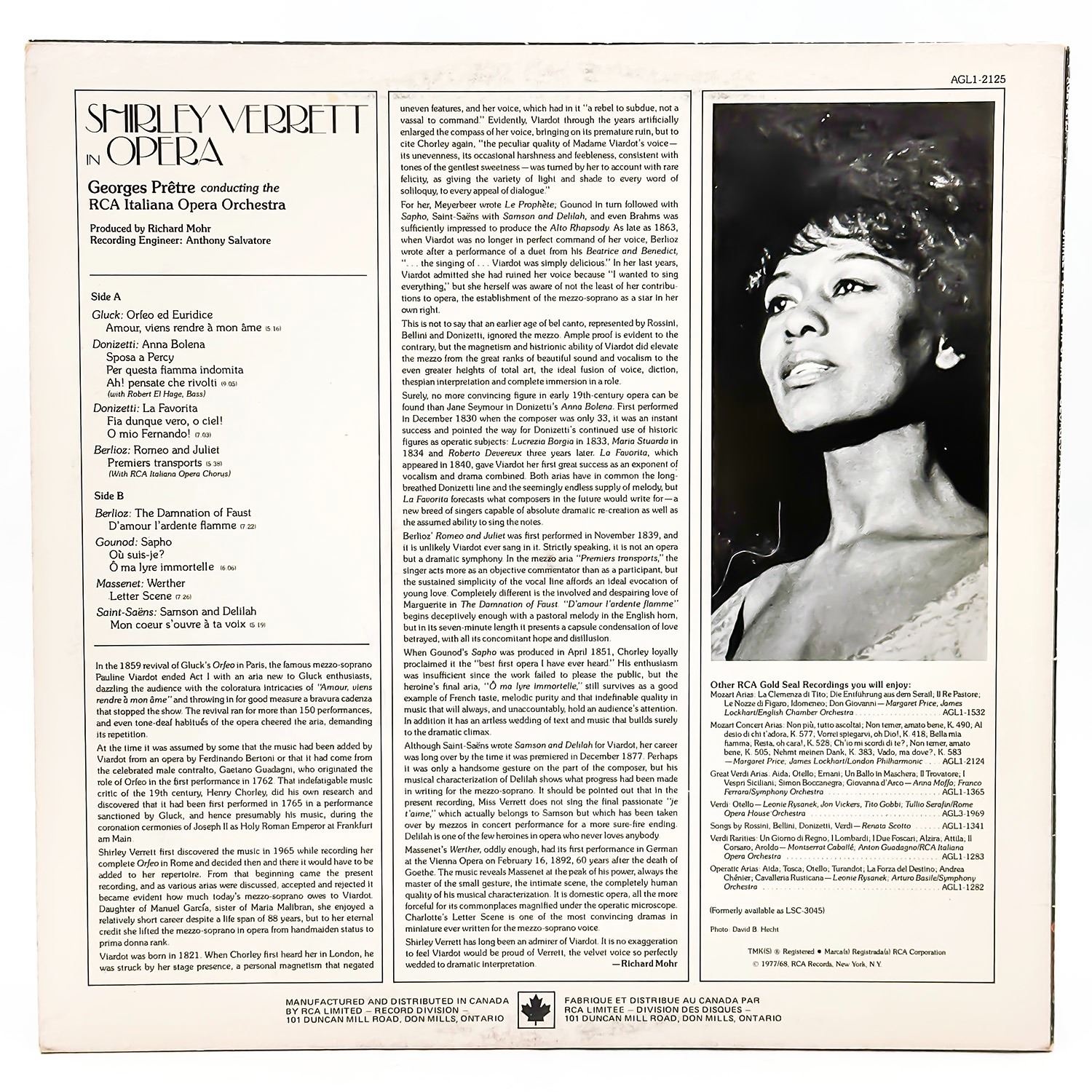 #9567 - FROM PRIVATE COLLECTION OF CLASSICAL/OPERA RECORDS. VINYL LP RECORD ALBUM. CONDUCTED BY GEORGES PRETRE - IN OPERA. CLASSICAL, OPERA, RCA GOLD SEAL RECORDS AGL1-2125