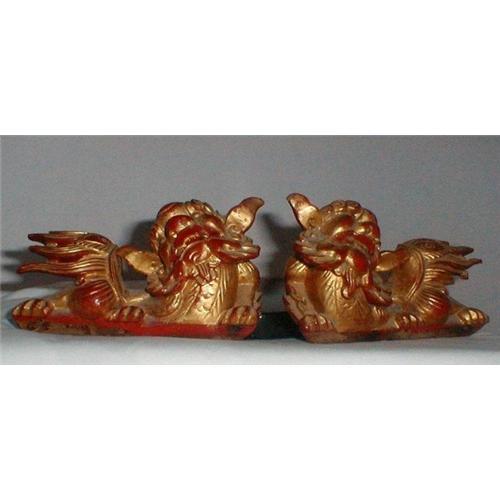<tr><td>Title:SHISHI Gilt on Red Lacquer, matched pair,</td></tr>