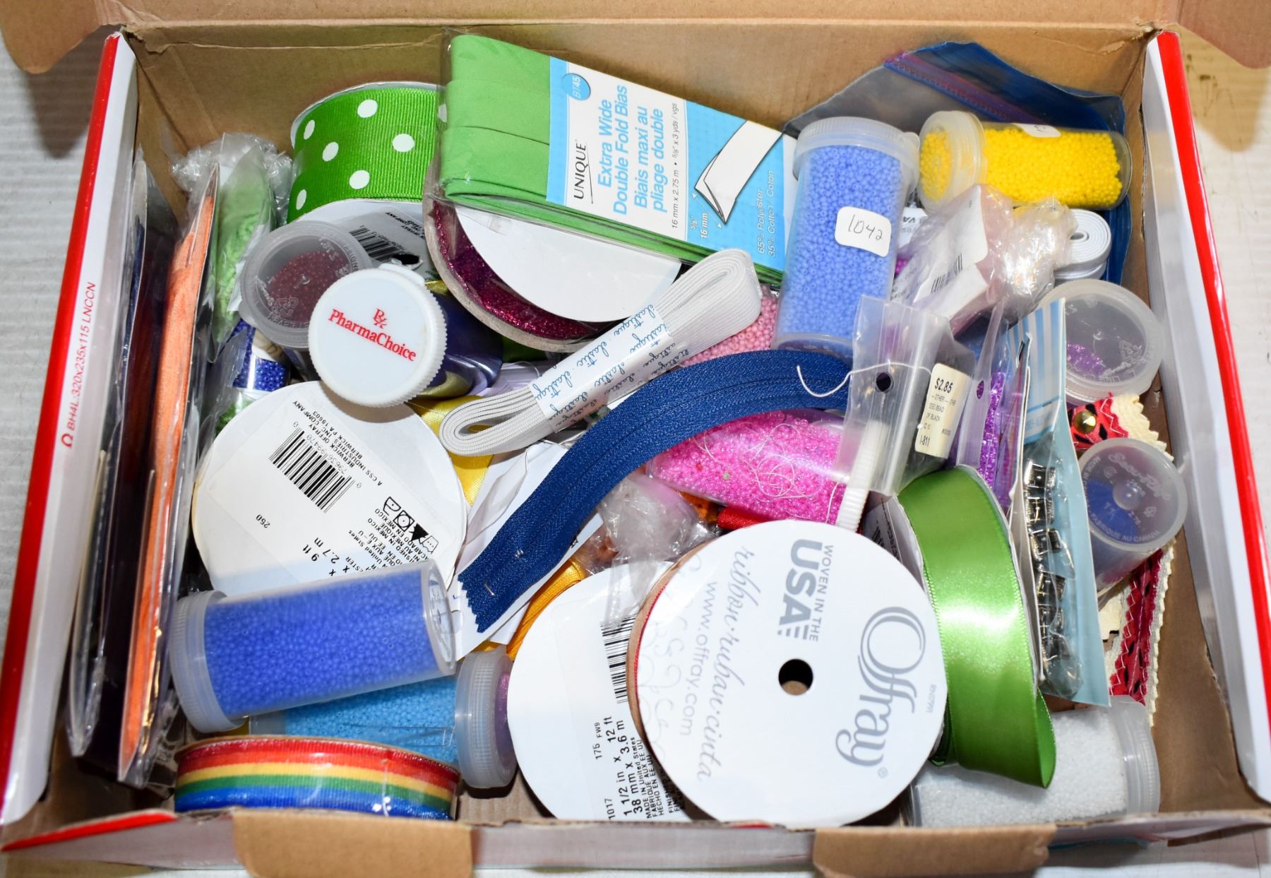 SHOEBOX FULL OF CRAFT AND BEADWORK SUPPLIES