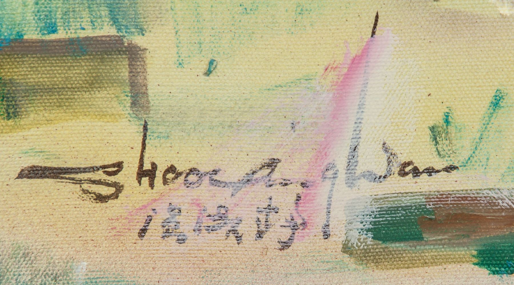 Oil on canvas. Featuring an abstract composition. Signed by Shoo Ching Wan (Chinese, 20th century). 61 x 76 cm (24 x 30 inches). PROVENANCE: Acquired from the artist. Kagan Fine Art (2017)