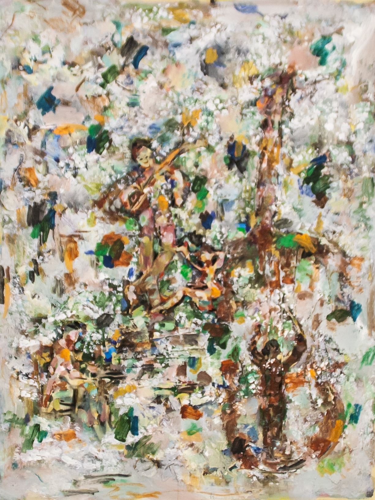 Oil on canvas. Featuring an abstract composition. Signed by Shoo Ching Wan (Chinese, 20th century). 91 x 76.5 cm (36 x 30 inches). PROVENANCE: Acquired from the artist. Kagan Fine Art (2017)