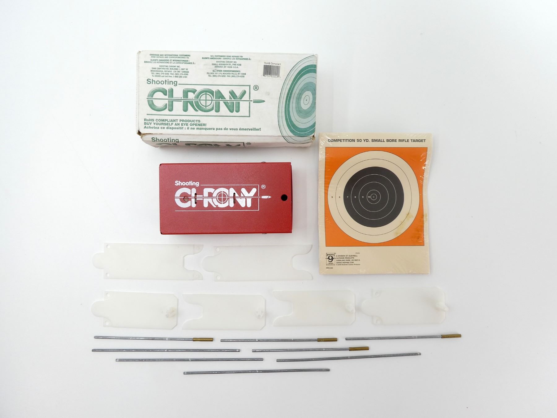 SHOOTING CHRONY ALPHA CHRONOGRAPH AND PAPER TARGETS LOT
