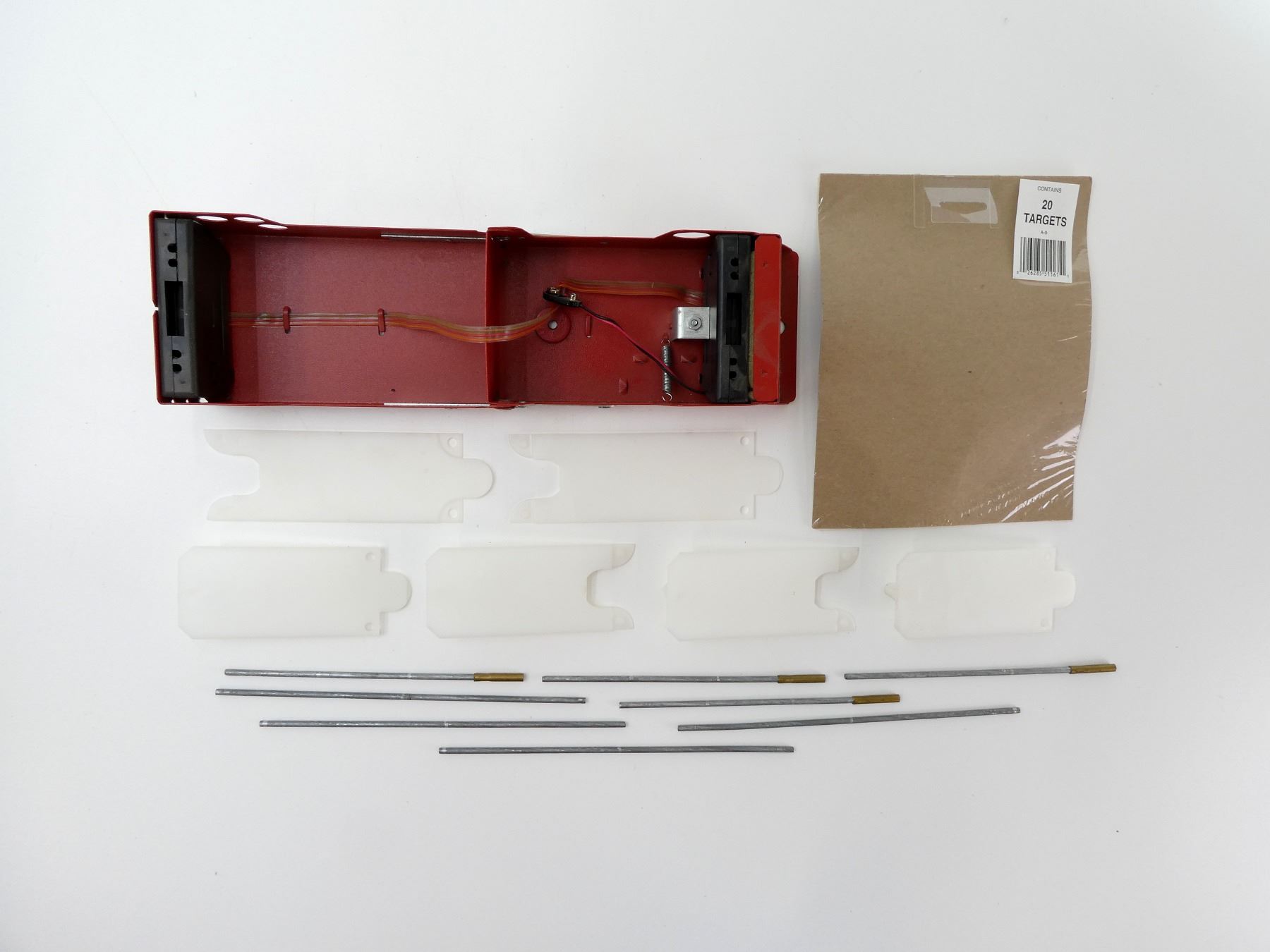 LOT INCLUDES; (1) SHOOTING CHRONY, MODEL ALPHA, MEASURES BULLETS, ARROWS, PAINTBALLS, ETC., MEASURES SPEEDS FROM 30 TO 7000 FPS, STEEL CONSTRUCTION, APPEARS COMPLETE, WITH ORIGINAL BOX, TURNS ON, NOT FULLY TESTED & APPROX. (20) HOPPE'S COMPETITION 50 YD SMALL BORE RIFLE PAPER TARGETS, NOS, UN-OPENED PACKAGING. SEE PHOTOS.