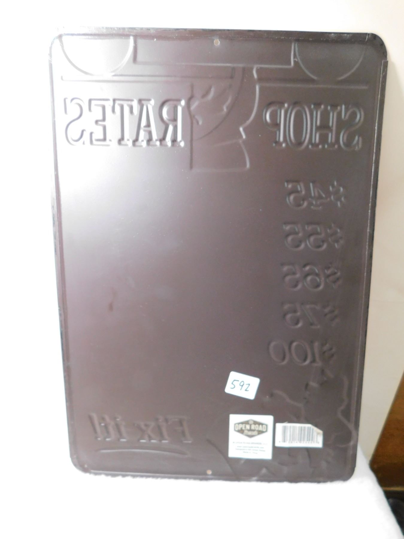 SHOP RATES, HUMEROUS TIN SIGN