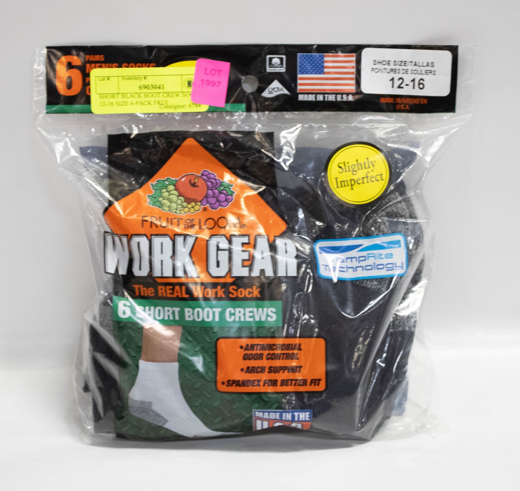 SHORT BLACK BOOT CREW SOCKS 12-16 SIZE 6-PACK FRUI
