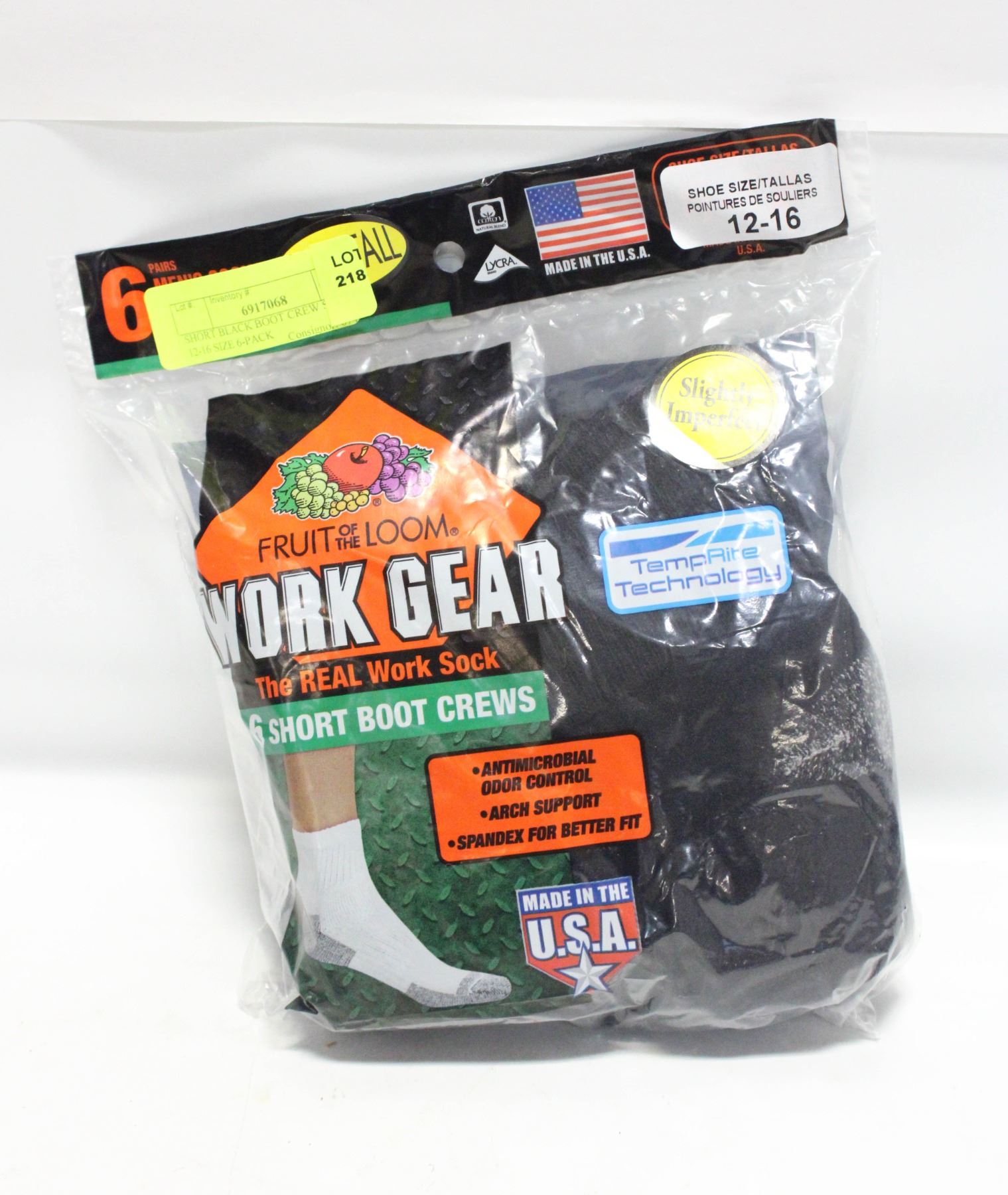 SHORT BLACK BOOT CREW SOCKS 12-16 SIZE 6-PACK