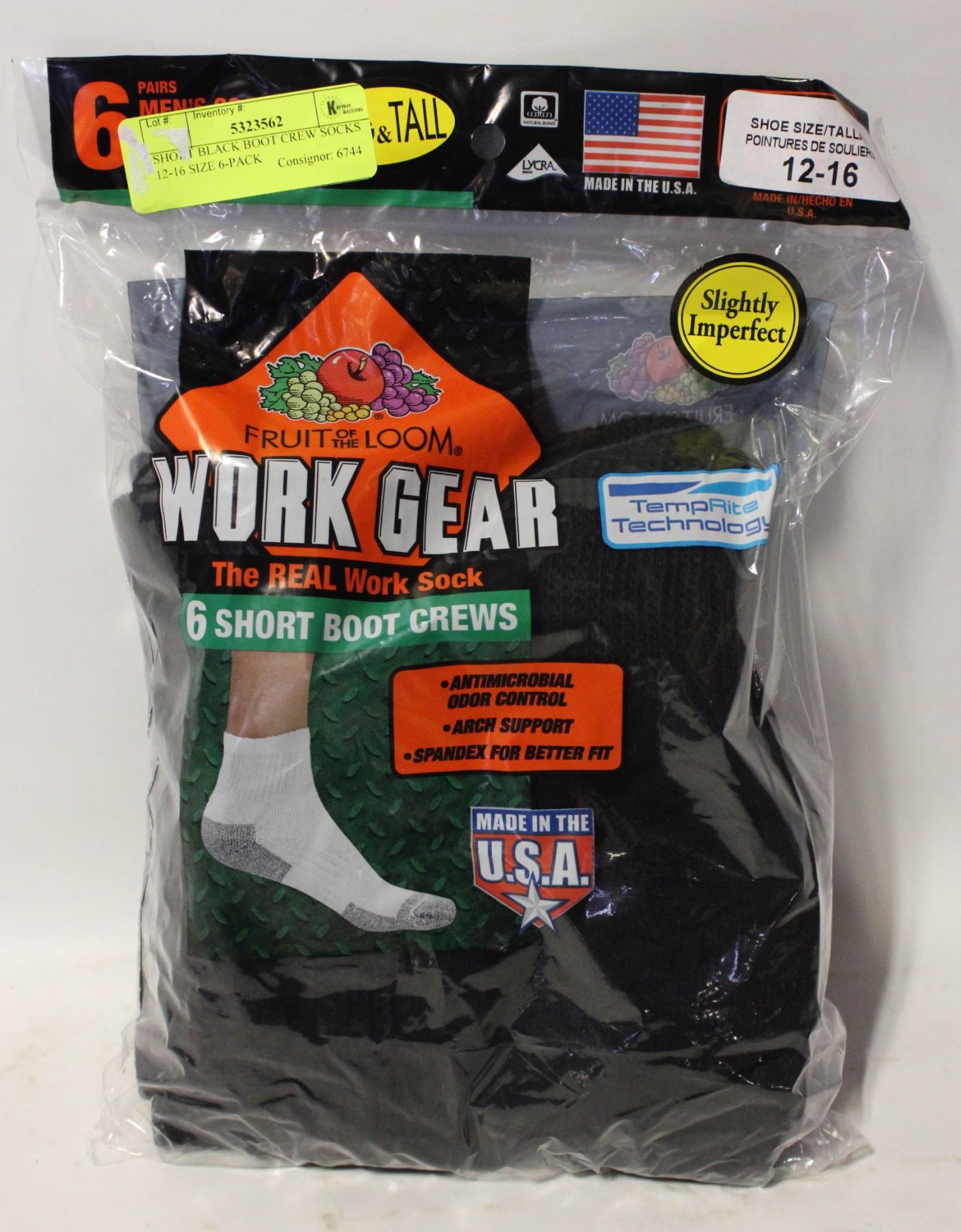 SHORT BLACK BOOT CREW SOCKS 12-16 SIZE 6-PACK