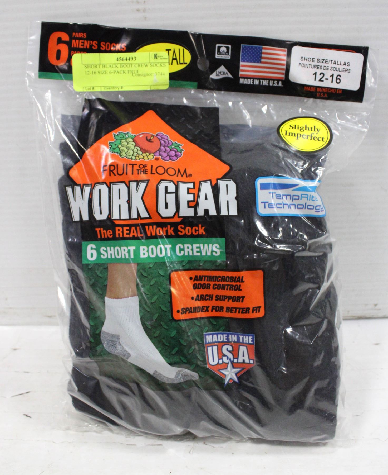 SHORT BLACK BOOT CREW SOCKS 12-16 SIZE 6PACK FRUIT