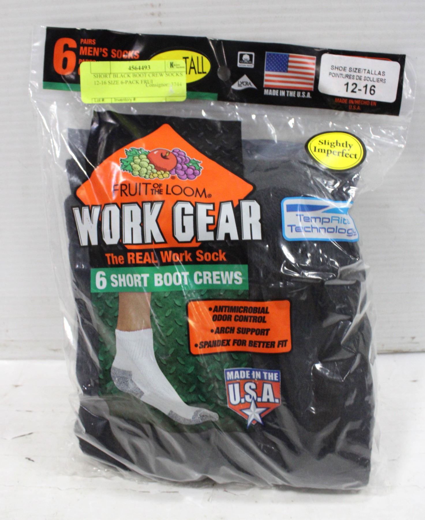 SHORT BLACK BOOT CREW SOCKS 12-16 SIZE 6PACK FRUIT