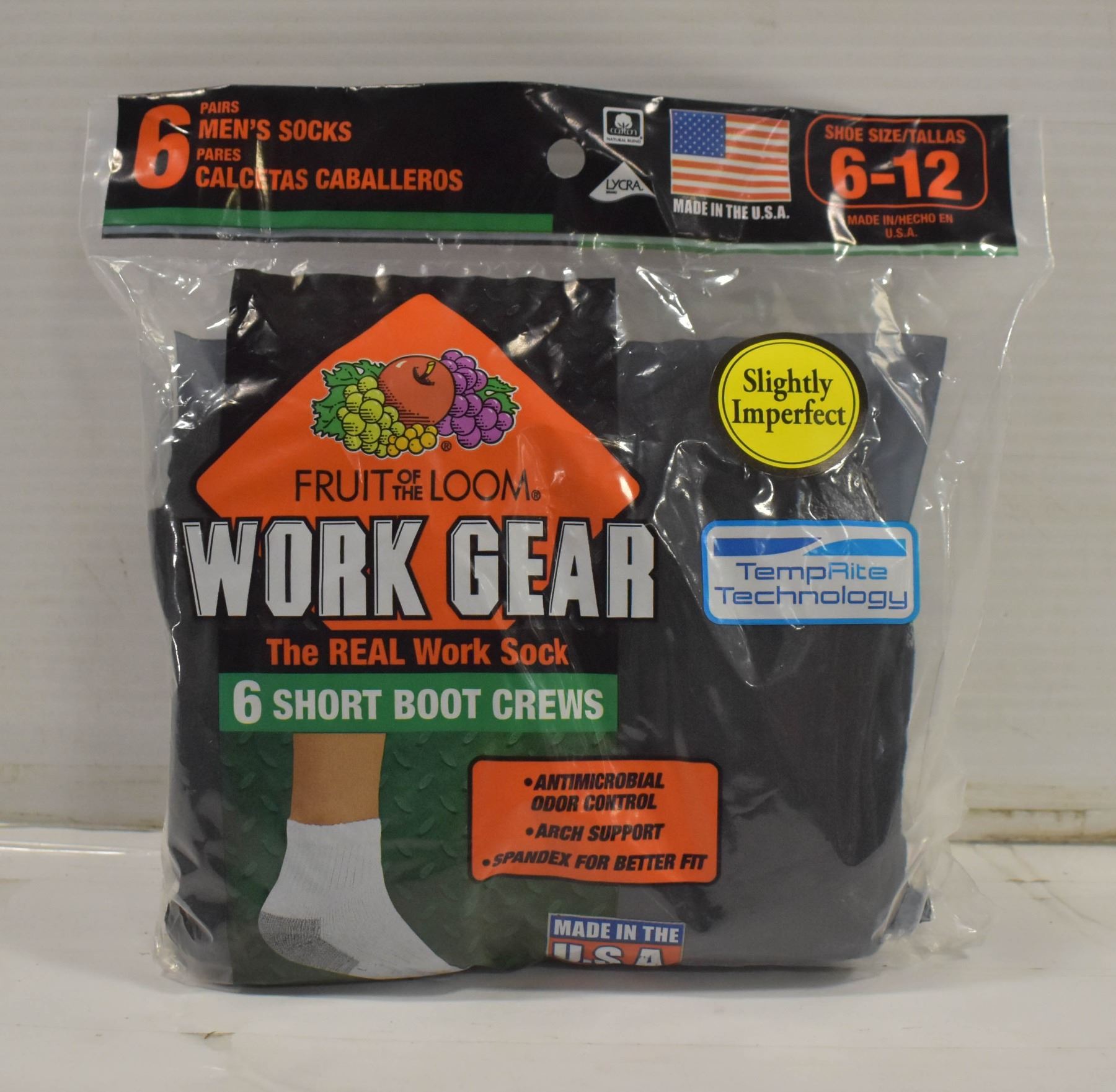 SHORT BOOT CREW SOCK BLACK 6-12 SIZE 6-PACK