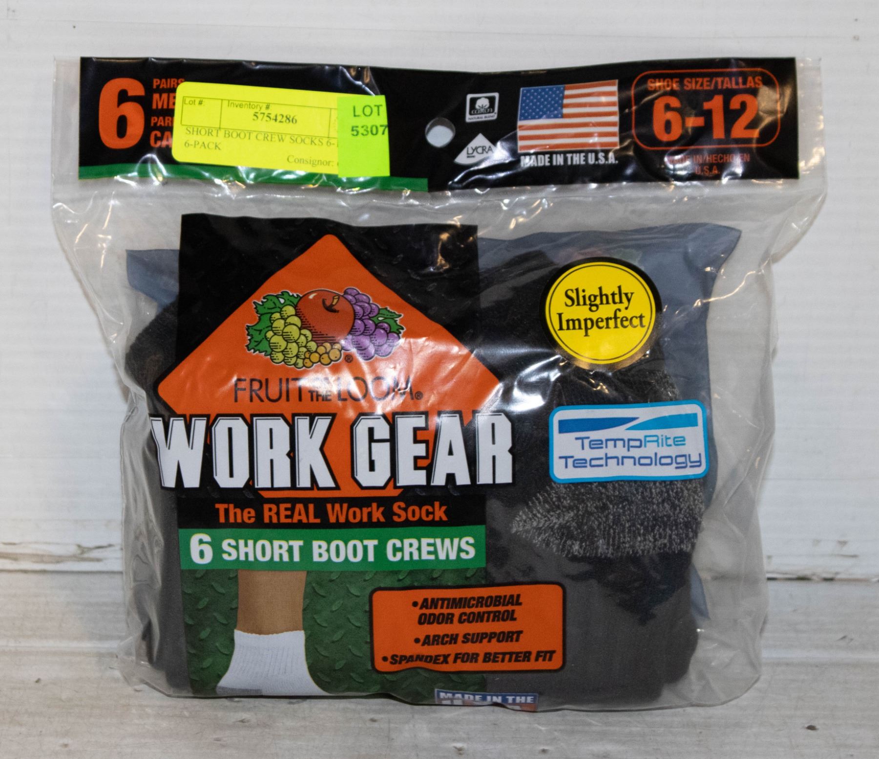 SHORT BOOT CREW SOCKS 6-12 SIZE 6-PACK
