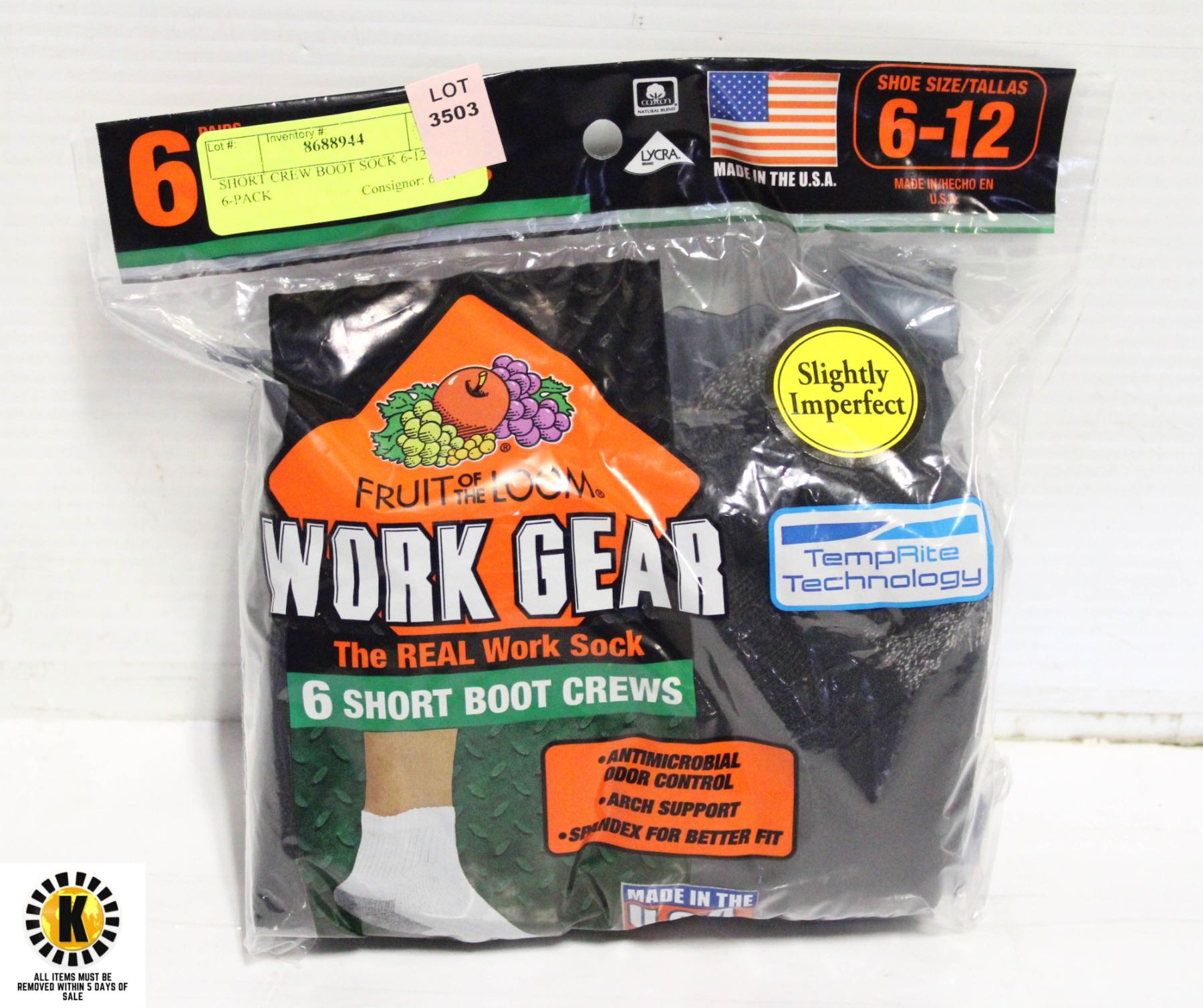 SHORT CREW BOOT SOCK 6-12 SIZE 6-PACK