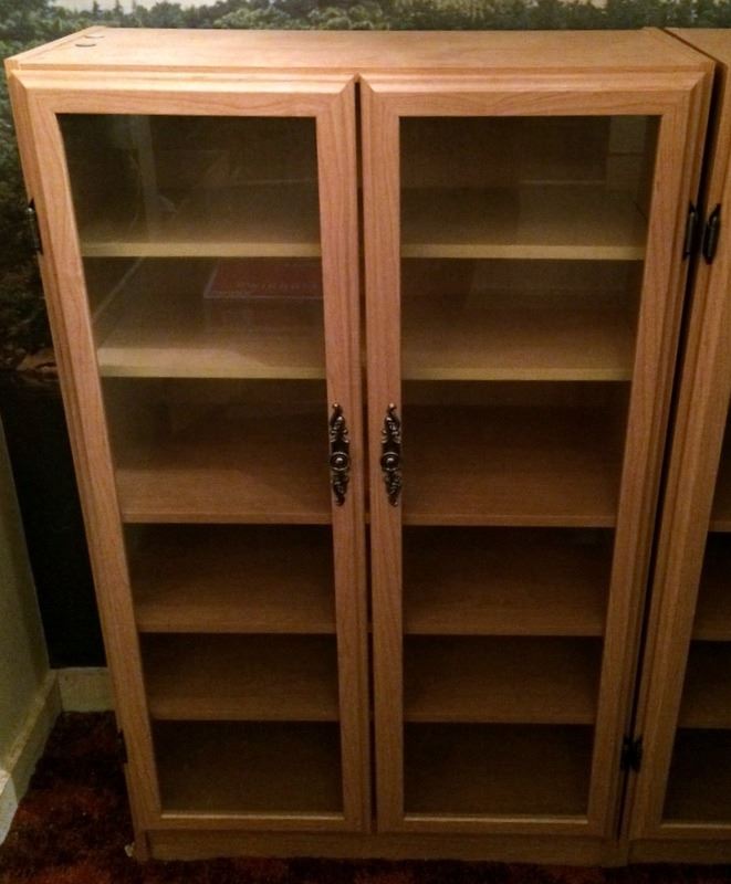 PICK UP ONLY, WILL NOT SHIP. WOOD AND GLASS DISPLAY CASE, 29" WIDE, 12" DEEP, 48" TALL.