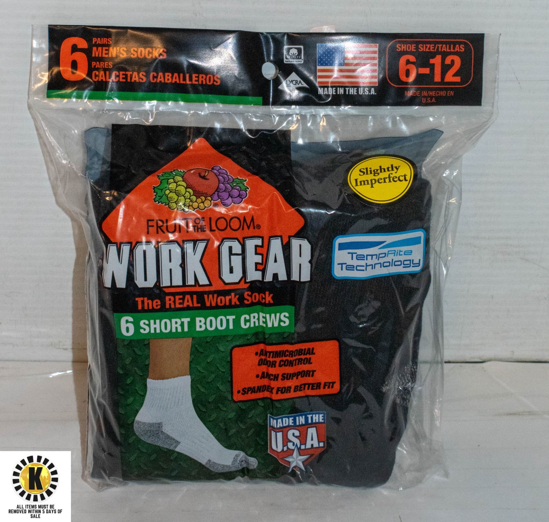 SHORT WORK BOOT SOCKS,SIZE 6-12,6-PACK