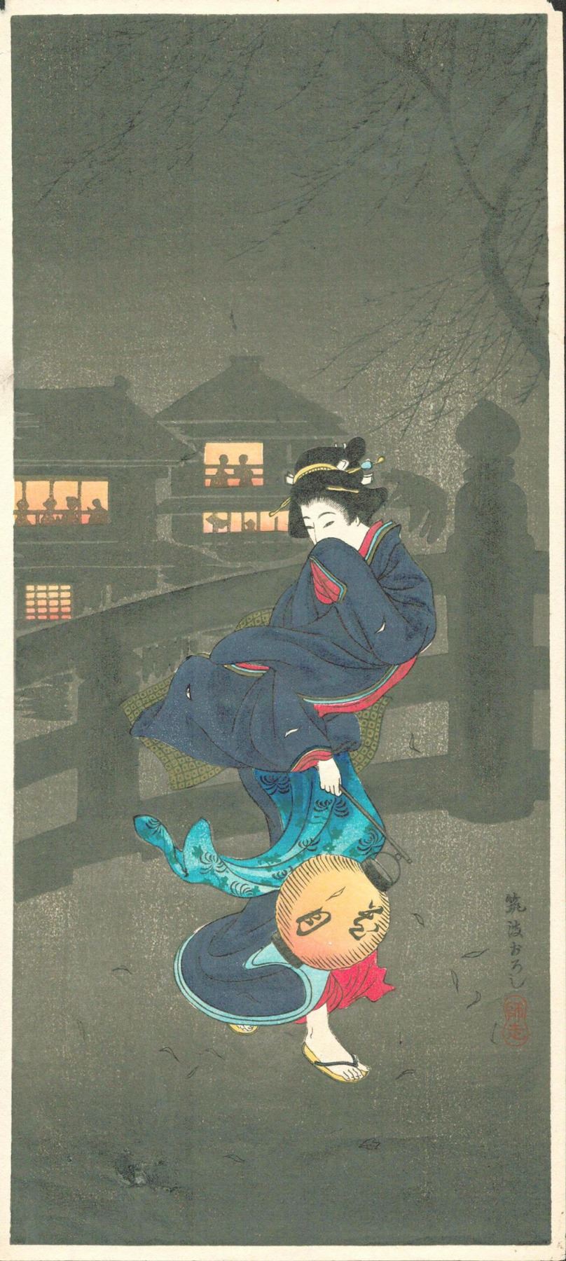SHOTEI - "COLD WINTER WIND", 15 1/8" X 6 1/2", VERY GOOD CONDITION