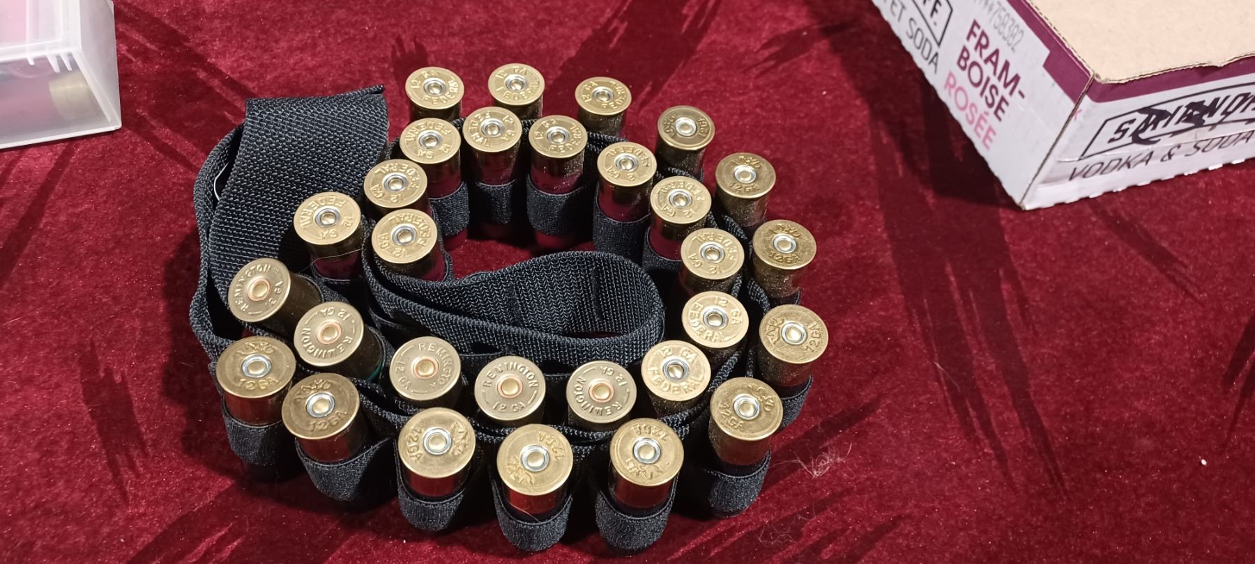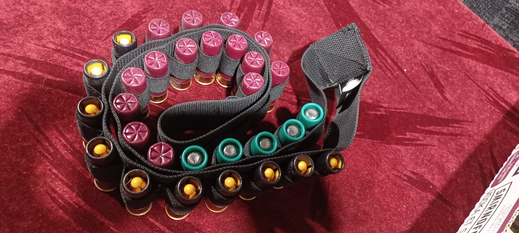SHOTGUN AMMO BELT 12GA WITH TEN SABOTH SLUGS, QTY15 .00BUCK AND QTY5 SLUGS