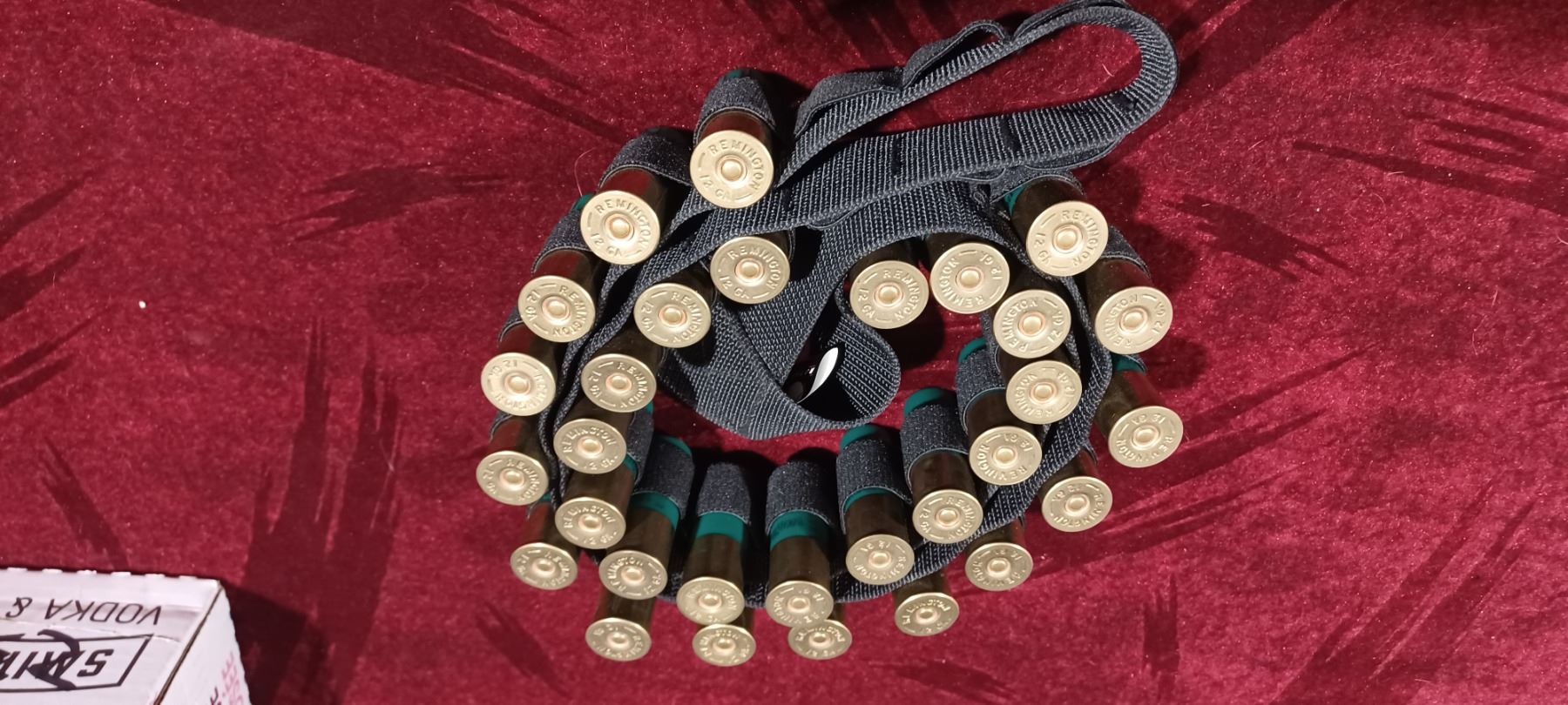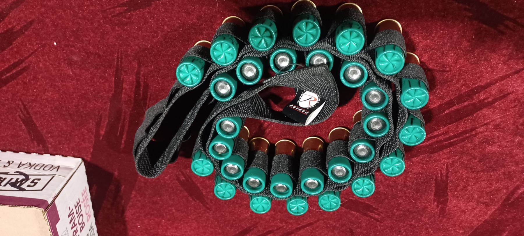SHOTGUN AMMO BELT COMES WITH 15 .00BBUCK AND 15 SLUGS