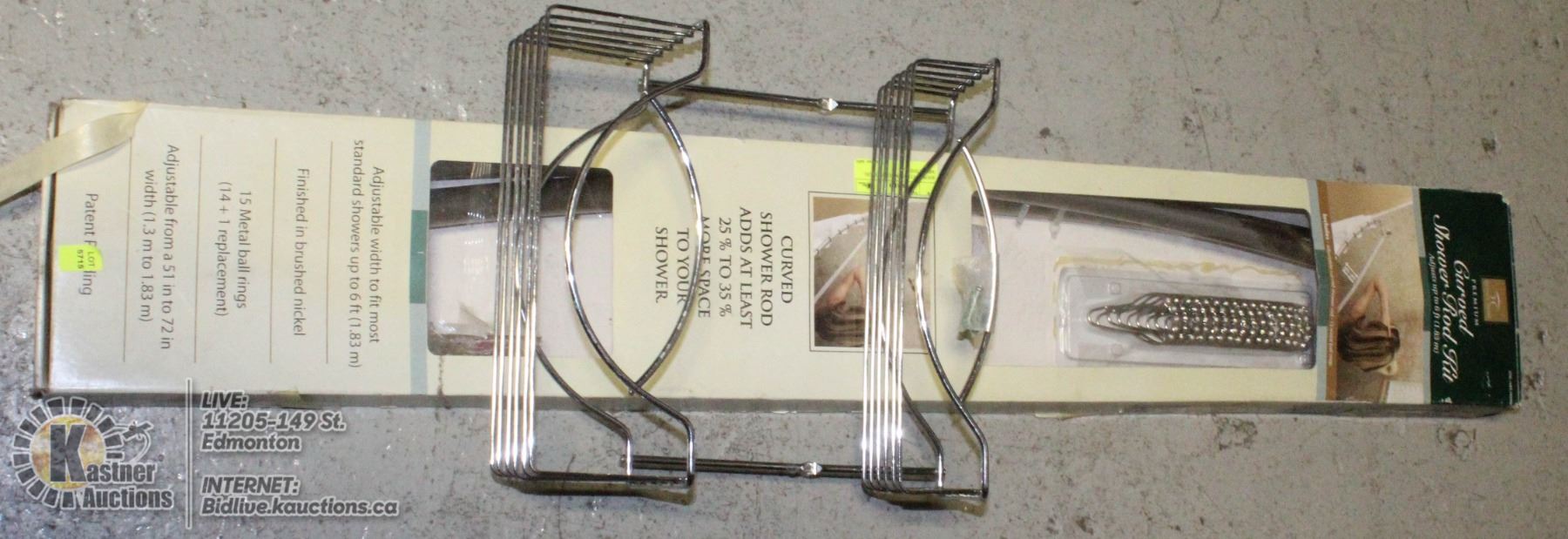 SHOWER CURTAIN CURVED ROD, METAL SHELF,