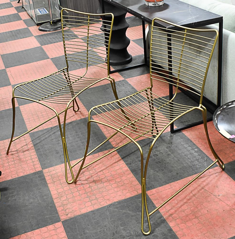 SHOWHOME PAIR OF BRASS COLOURED METAL CHAIRS