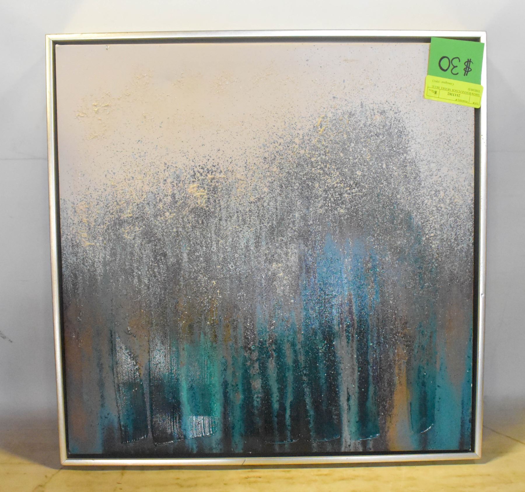 FRAMED STRETCHED CANVAS WITH TEXTURED PAINT SWIPES ACROSS THE CANVAS
