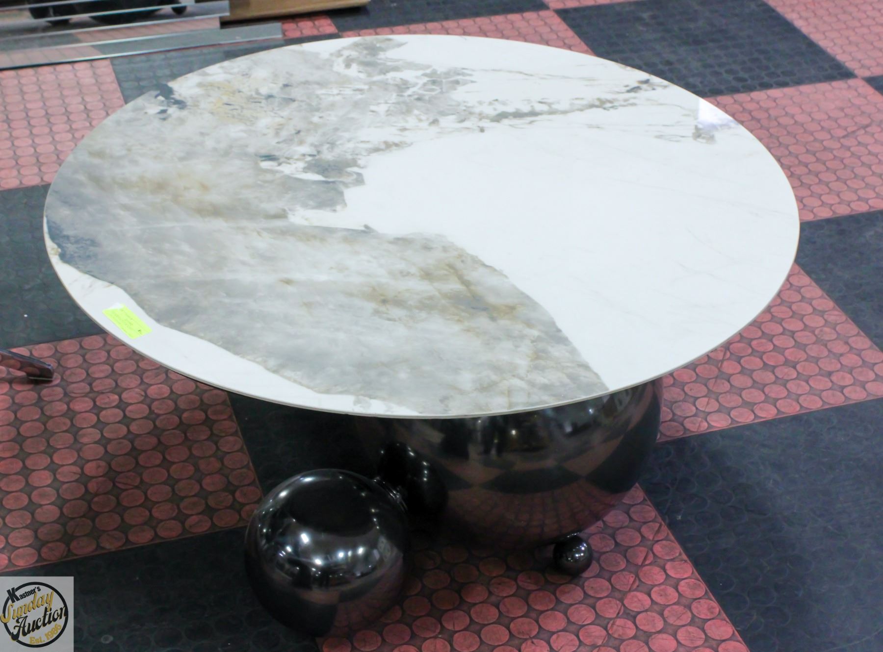PORCELAIN CUSTOM DESIGNED ROUND TABLE HEIGHT 17" DIAMETER-35.5" **ALL ITEMS MUST BE REMOVED BY 5PM SATURDAY, SEPTEMBER 27TH 2025. ALL REMAINING ITEMS WILL BE SUBJECT TO A $6.00 PER DAY STORAGE CHARGE. ANY ITEMS REMAINING AFTER MONDAY, OCTOBER 13TH 2025 WILL BE CONSIDERED FORFEITED. NO REFUNDS WILL BE ISSUED FOR FORFEITED ITEMS. TO SCHEDULE A PICK UP APPOINTMENT CLICK HERE