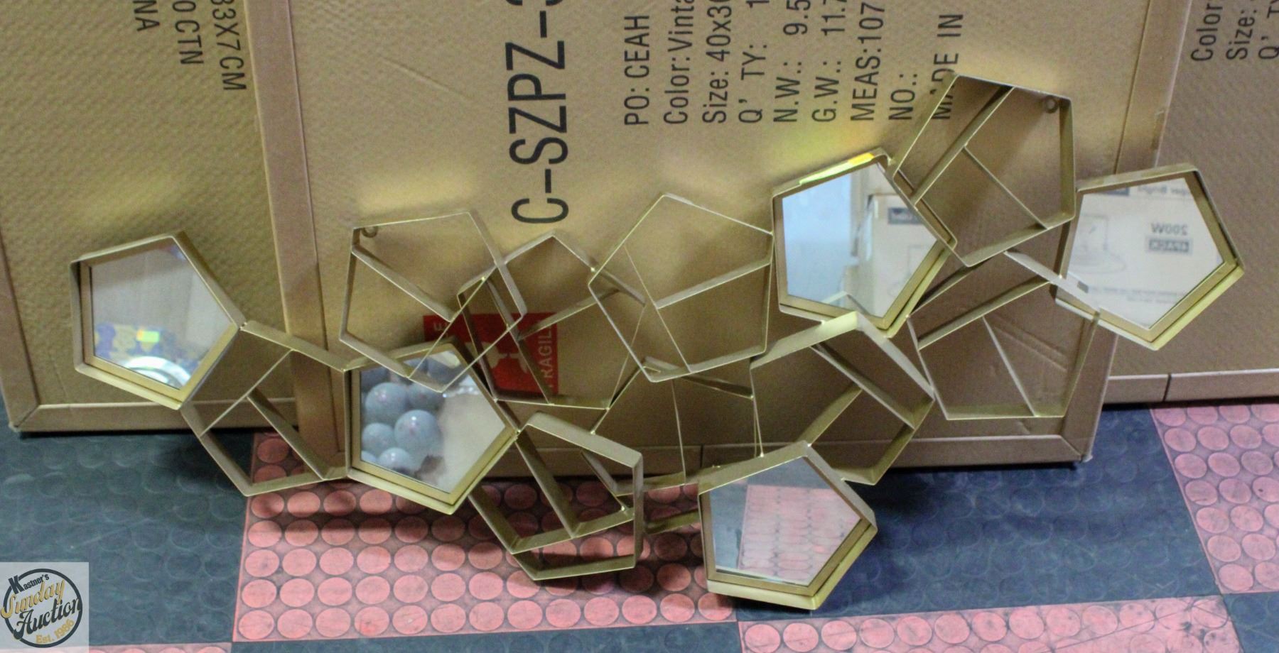GEOMETRICAL WALL MIRROR/DECOR **ALL ITEMS MUST BE REMOVED BY 5PM SATURDAY, SEPTEMBER 27TH 2025. ALL REMAINING ITEMS WILL BE SUBJECT TO A $6.00 PER DAY STORAGE CHARGE. ANY ITEMS REMAINING AFTER MONDAY, OCTOBER 13TH 2025 WILL BE CONSIDERED FORFEITED. NO REFUNDS WILL BE ISSUED FOR FORFEITED ITEMS. TO SCHEDULE A PICK UP APPOINTMENT CLICK HERE