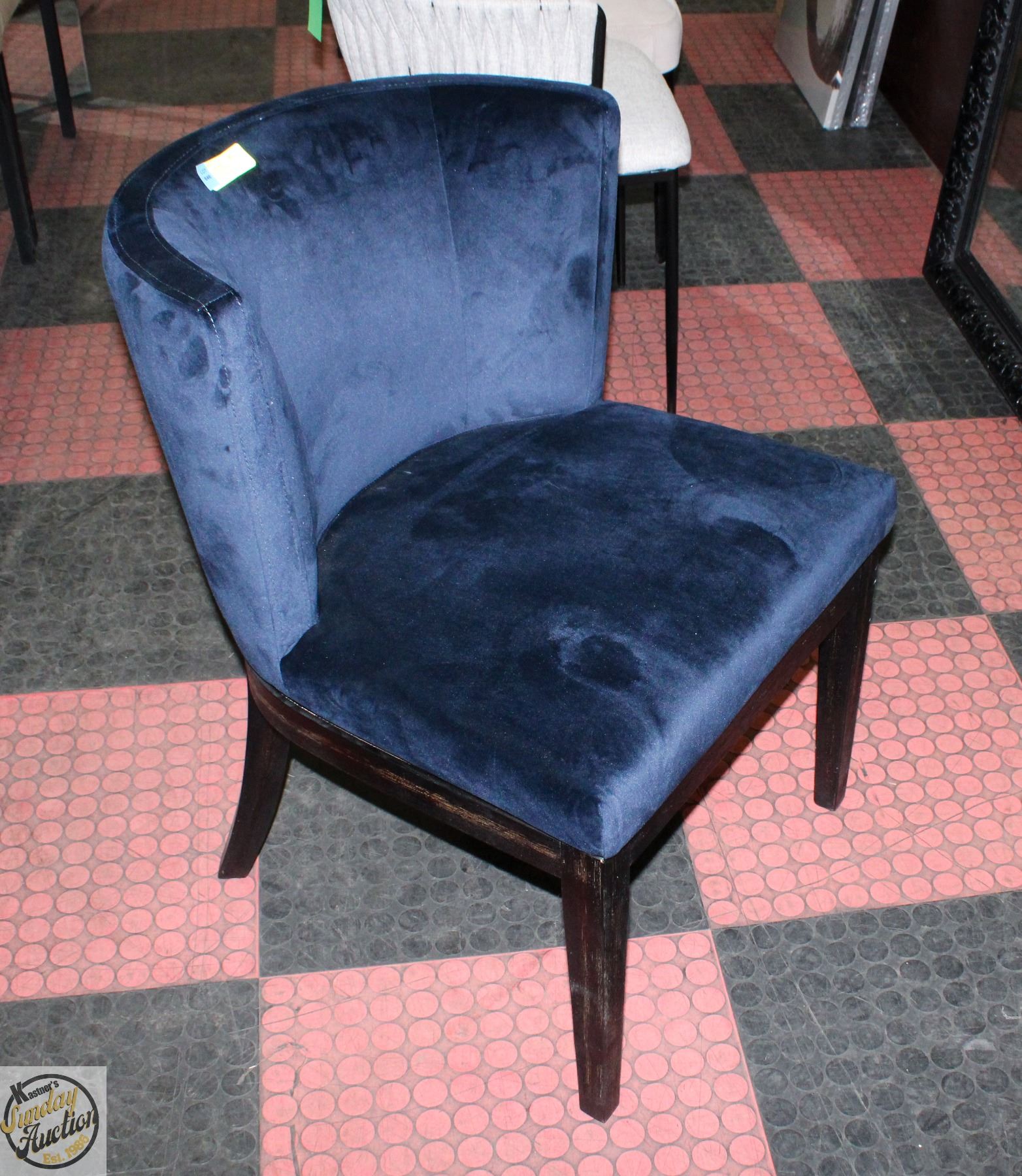 ACCENT CHAIR GRAY + WOODEN FRAMED SEAT ROYAL BLUE SUEDE, HEIGHT-18" **ALL ITEMS MUST BE REMOVED BY 5PM SATURDAY, SEPTEMBER 20TH 2025. ALL REMAINING ITEMS WILL BE SUBJECT TO A $6.00 PER DAY STORAGE CHARGE. ANY ITEMS REMAINING AFTER MONDAY, OCTOBER 6TH 2025 WILL BE CONSIDERED FORFEITED. NO REFUNDS WILL BE ISSUED FOR FORFEITED ITEMS. TO SCHEDULE A PICK UP APPOINTMENT CLICK HERE