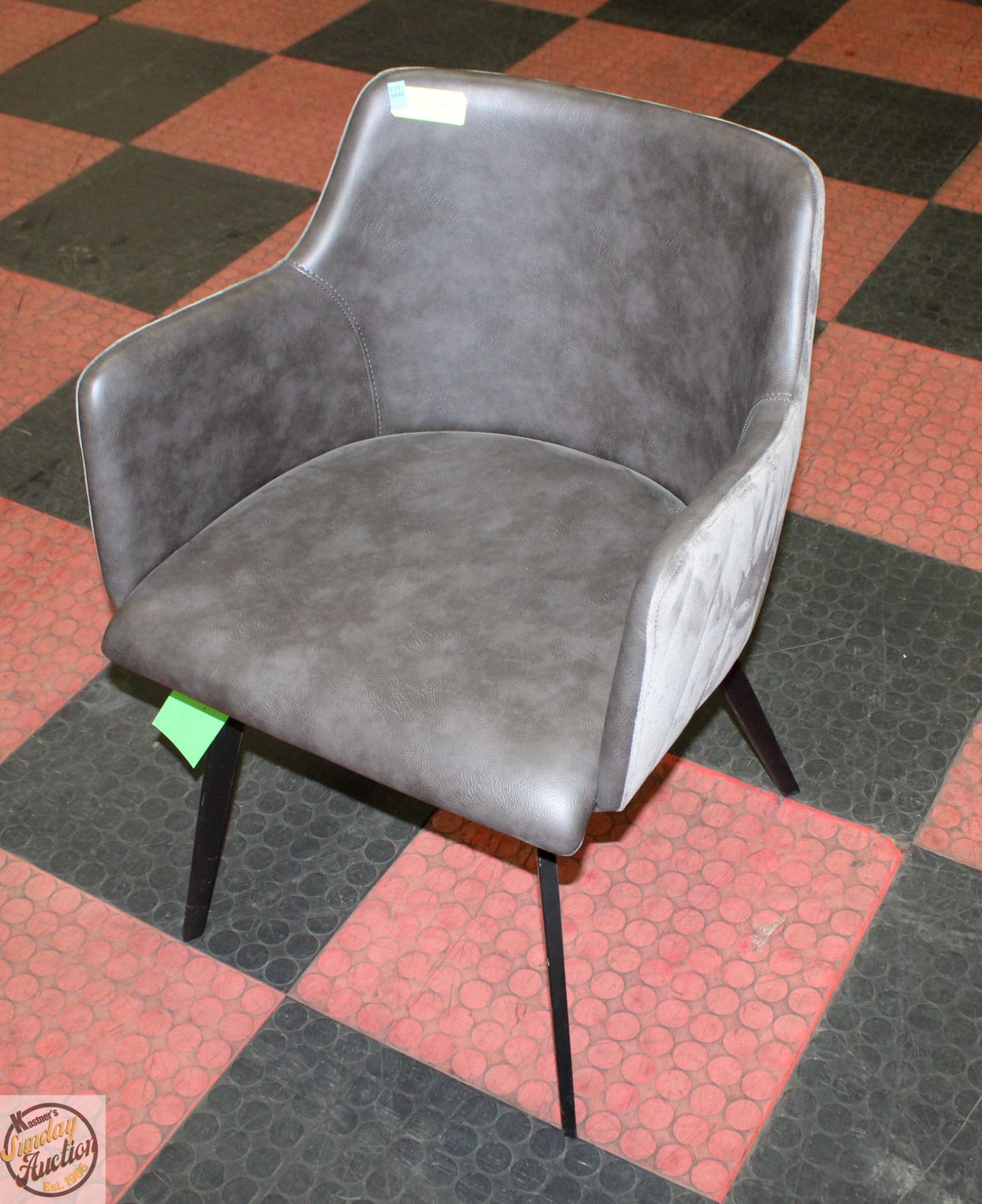 LEATHER INNER ACCENT CHAIR WITH BLACK LEGGED **ALL ITEMS MUST BE REMOVED BY 5PM SATURDAY, SEPTEMBER 20TH 2025. ALL REMAINING ITEMS WILL BE SUBJECT TO A $6.00 PER DAY STORAGE CHARGE. ANY ITEMS REMAINING AFTER MONDAY, OCTOBER 6TH 2025 WILL BE CONSIDERED FORFEITED. NO REFUNDS WILL BE ISSUED FOR FORFEITED ITEMS. TO SCHEDULE A PICK UP APPOINTMENT CLICK HERE