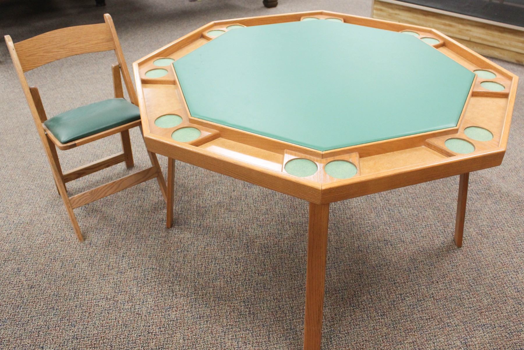 GREEN VINYL TOP & ACCENTS. C/W 1 FOLDING CHAIR. 52"