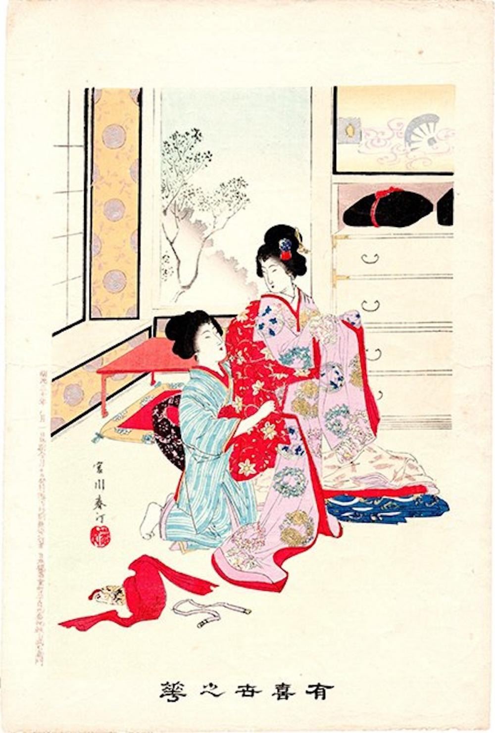SHUNTEL "MOTHER DRESSING DAUGHTER", CIRCA 1880, OBAN, 14 1/2 X 10, FINE CONDITION