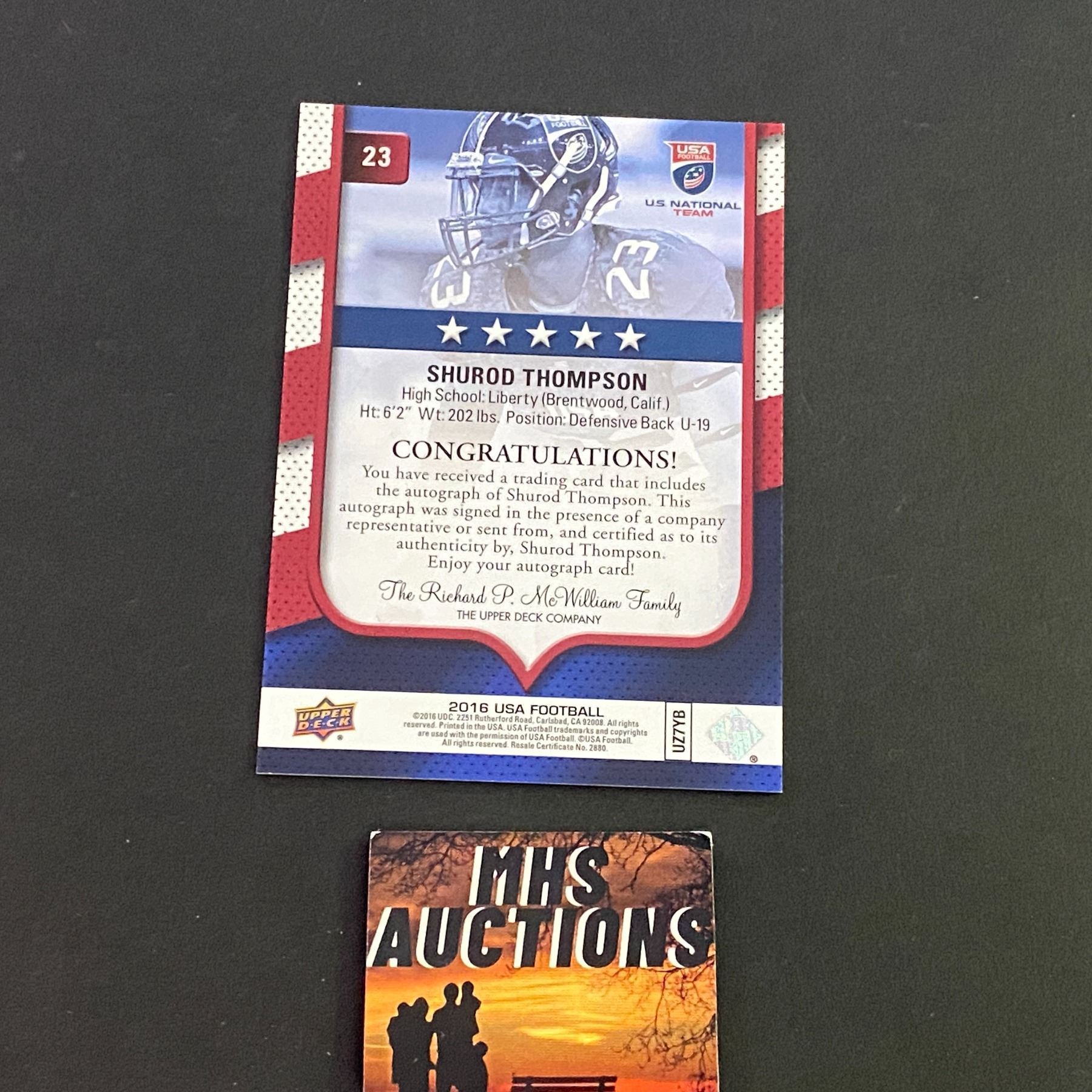 SHUROD THOMPSON 2016 USA FOOTBALL AUTOGRAPH CARD