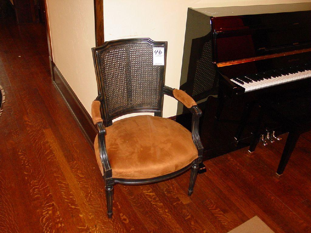 SIDE CANE-BACKED BLACK WOODEN CHAIR WITH LEATHER SEAT