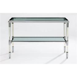 <b>Description: </b>glass, chrome-plated metal27 3/4 x 13 3/4 x 40 7/8 in. (71 x 104.5 x 35 cm)