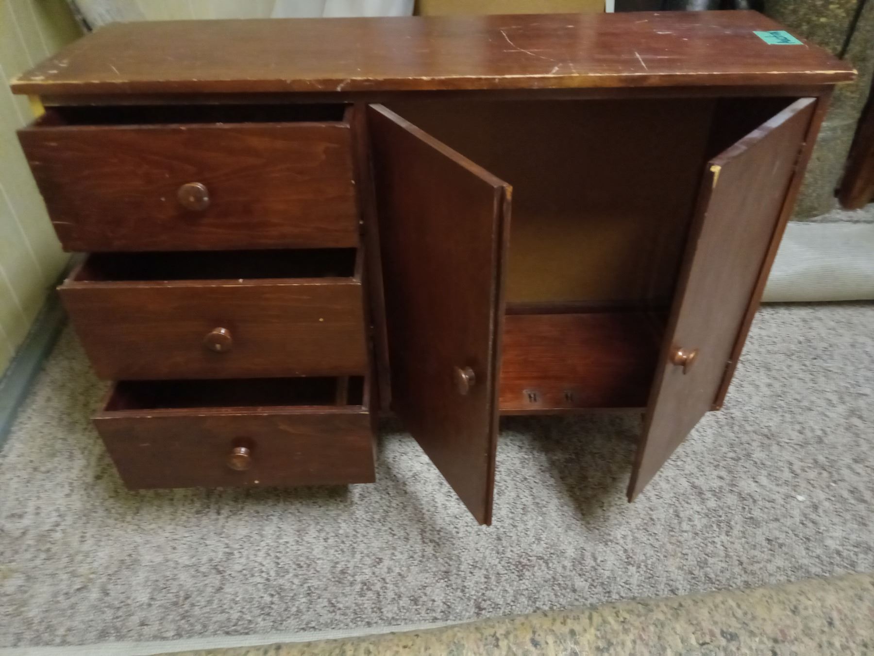 SIDEBOARD 29 1/2"h X 42"w X 14"d 3-DRAWER, 2-DOOR SIDEBOARD w/ FOLDING EXTENSION TABLE (22 3/4" X 42"w)