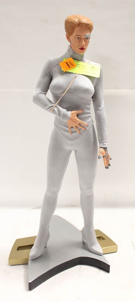 PREMIUM FORMAT 1/4 SCALE STATUE #140/100. ITEM# 71281. THE PREMIUM FIGURE REPRESENTS STAR TREKS MOST FAMOUS BORG IN 1/4 SCALE. A PERFECT BLEND OF SCULPTURE & CLOTHING. SCULPTED BY OLUF HARTVIGSON & CLOTHING TAILORED BY GREG MOWRY OF GEPPETTO PRODUCTIONS. CAST IN HEAVY WEIGHT POLYSTONE AND IS COMPLETE W/ STAR TREK VOYAGER INSIGNIA STYLED BASE. EACH BASE BOTTOM IS PRINTED WITH THE EDITION SIZE & INFO. **ALL ITEMS MUST BE REMOVED BY 5PM SATURDAY, DECEMBER 7TH 2024. ALL REMAINING ITEMS WILL BE SUBJECT TO A $6.00 PER DAY STORAGE CHARGE. ANY ITEMS REMAINING AFTER MONDAY, DECEMBER 14TH 2024 WILL BE CONSIDERED FORFEITED. NO REFUNDS WILL BE ISSUED FOR FORFEITED ITEMS. TO SCHEDULE A PICK UP APPOINTMENT CLICKHERE