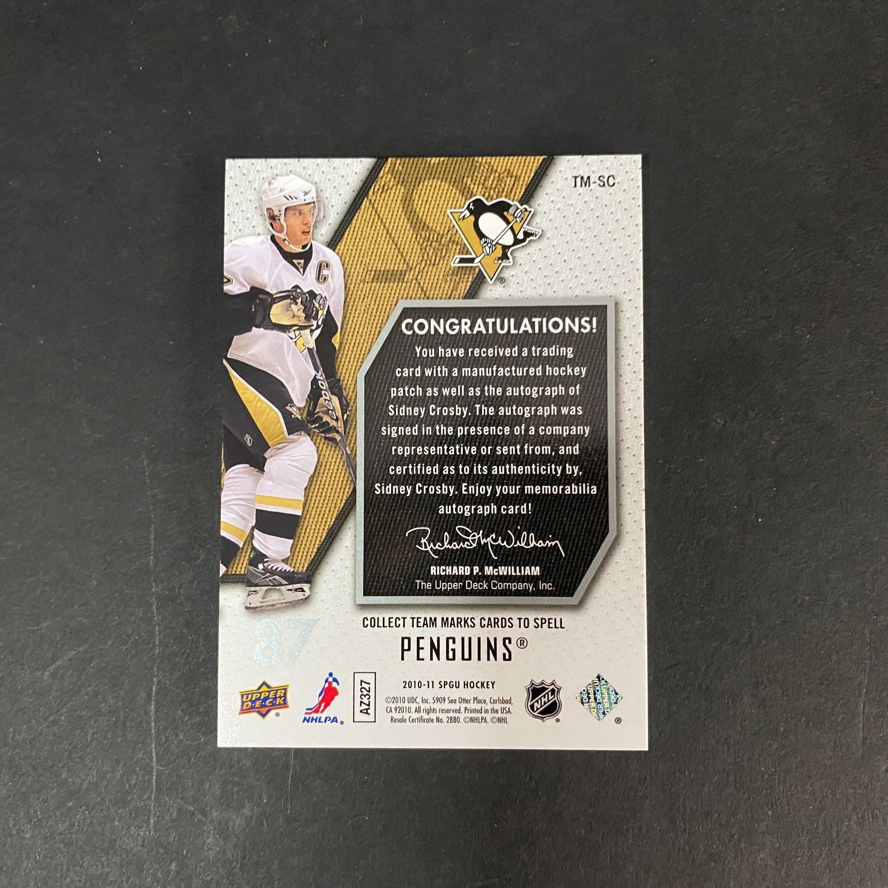 SIDNEY CROSBY TEAM MARKS CARD AUTOGRAPH NUMBERED TO ONLY 50