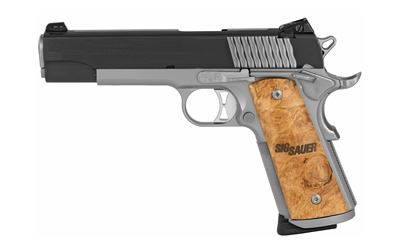 Sig Sauer, 1911 STX, Full Size Semi-automatic Pistol, 45 ACP, 5" Barrel, Steel Frame, Reverse Two-Tone Finish, Burled Maple Grip, SAO, 8Rd, 2 Steel Mags, Manual Safety, Adjustable Night Sights, MA Compliant