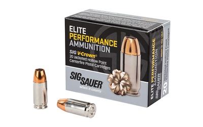 Sig Sauer, Elite Performance V-Crown Ammunition, 9MM, 124 Grain, Jacketed Hollow Point, 20 Round Box