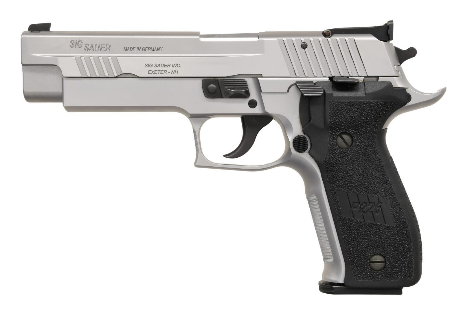 Cal. 40 S&W. S# U858830. Bbl. 5". Serrated blade front sight. Adjustable rear sight. German made SIG imported through Exeter, NH. Stainless finish. Decocker present on left side of frame. Pebbled black factory grips. MAGS: 1-12 rd. UNATTACHED ACCESSORIES: w/box. CONDITION: all aspects rate very good plus or better w/ some light handling marks. PROVENANCE: The Collection of Gun Sport Ltd owned by Jon R. Thomas. (23-4078/MJC). MODERN. $700-1000.