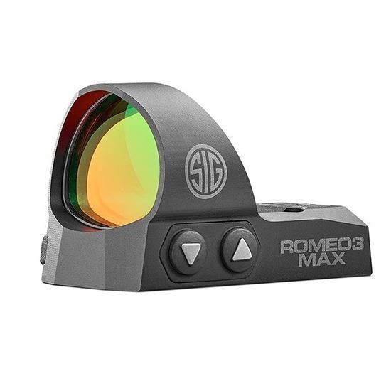Developed in collaboration with Team SIG Captain, Max Michel, and already established as an advantage in the 2019 competitive season. The ROMEO3MAX is a compact, open reflex sight featuring a 30mm wide, round lens design for superior field-of-view, a special red-notch filter for vivid red dot and unrivaled optical clarity, with a 3 or 6 MOA dot size for rapid target engagement, twelve illumination intensity levels, MOTAC activation, and up to 20,000 hours of runtime.