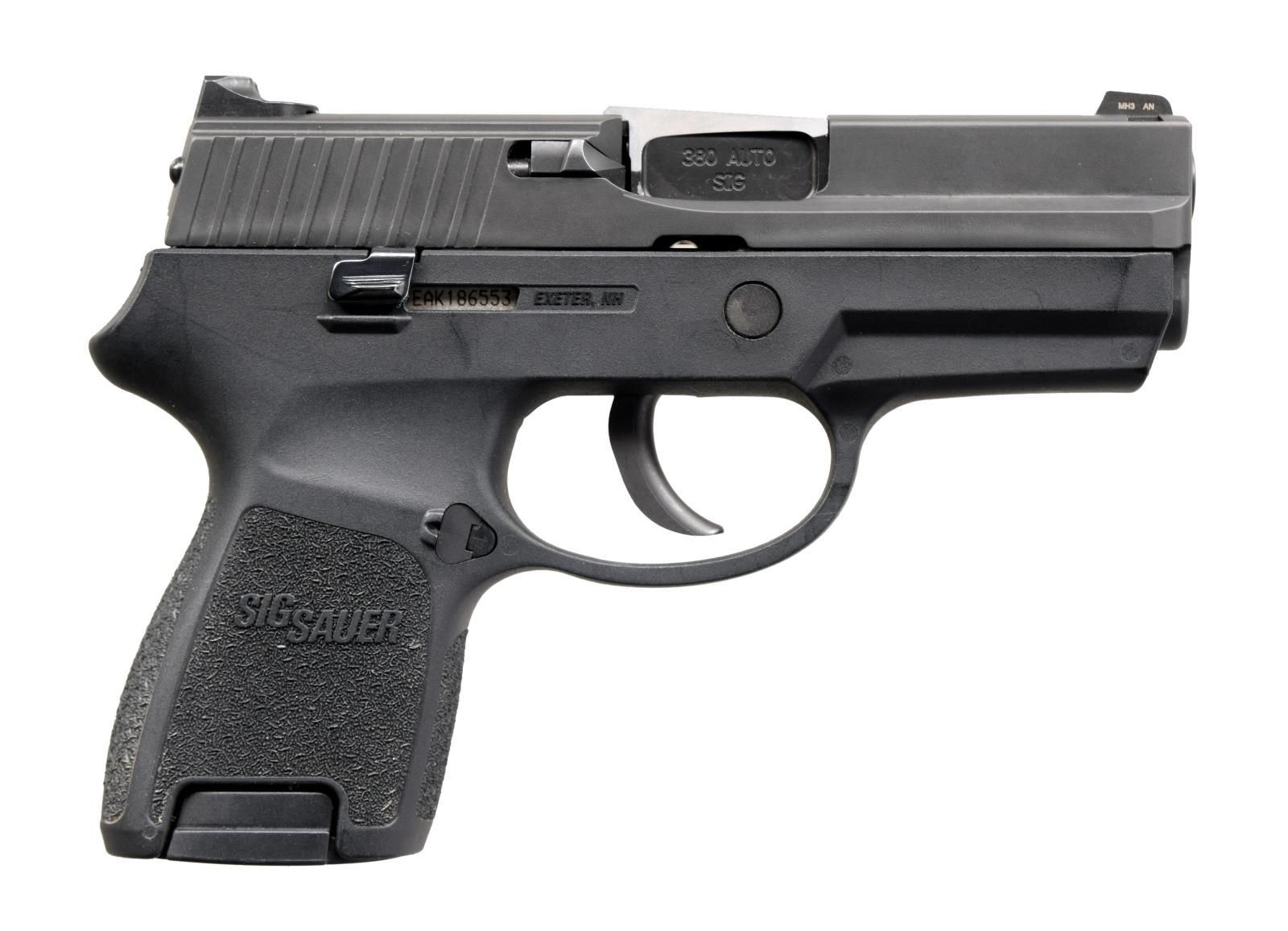 Cal. 380 ACP. S# EAK186553. Bbl. 3 1/2". Three dot sights. Matte black finish. Ambi slide release. Polymer frame. MAGS: 1-12 rd. UNATTACHED ACCESSORIES: w/ box. CONDITION: all aspects near excellent w/ some light handling wear. PROVENANCE: the Collection of Gun Sport Ltd owned by Jon R. Thomas. (23-3953/MJC). MODERN. $300-500.
